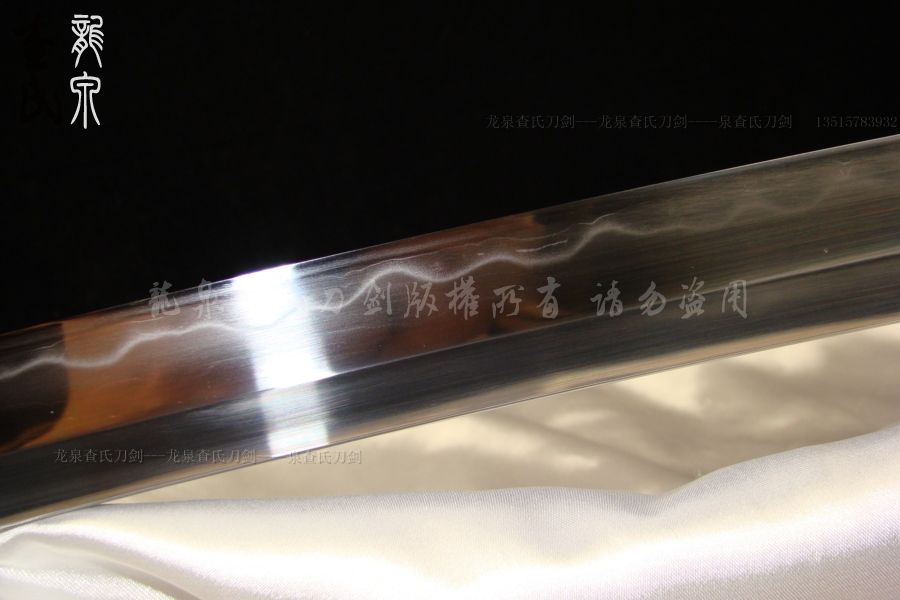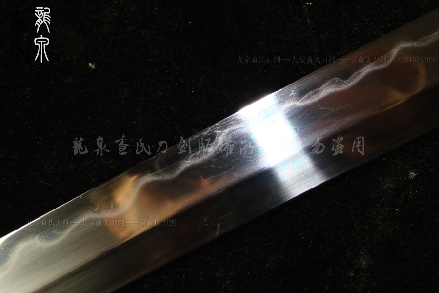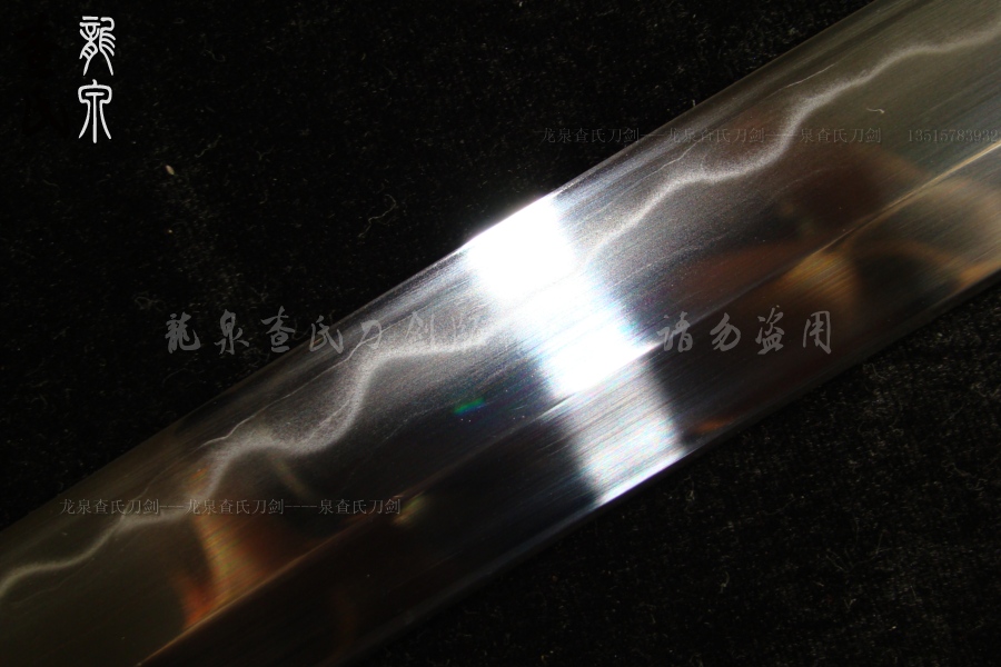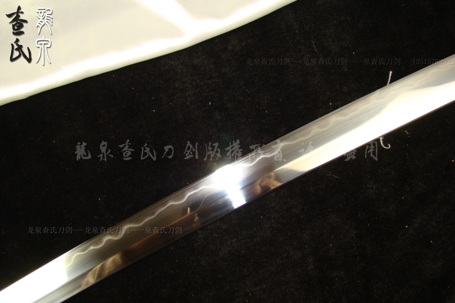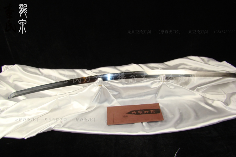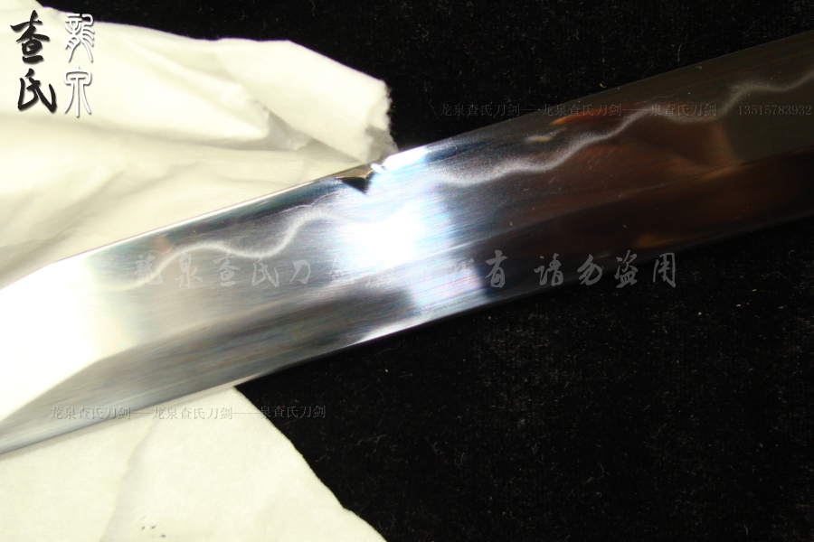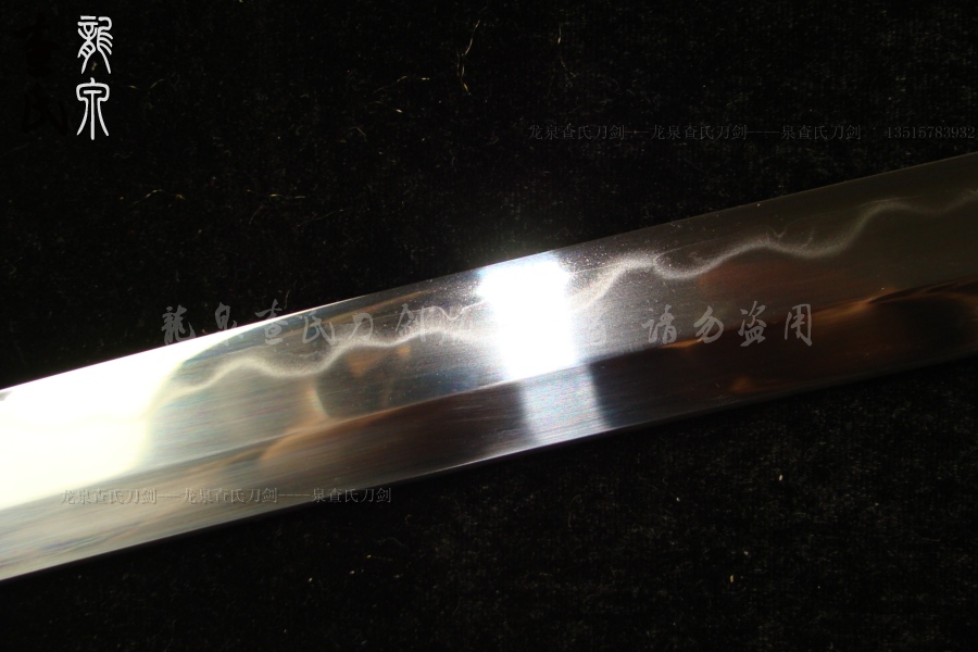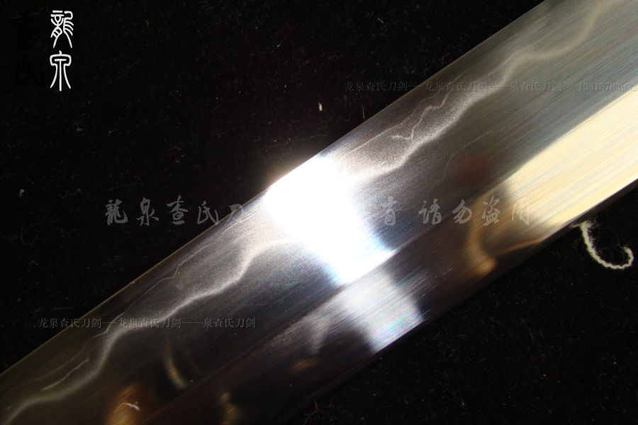 进口玉钢打造(6万层锻造【规格】 全长:103cm,刃长:72cm,柄长:26cm,刃宽:3.2cm,刃厚:0.7cm【工艺】 折叠花纹钢 本三枚工艺 敷土烧刃 顶级细研磨+查氏上研