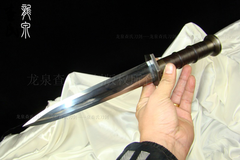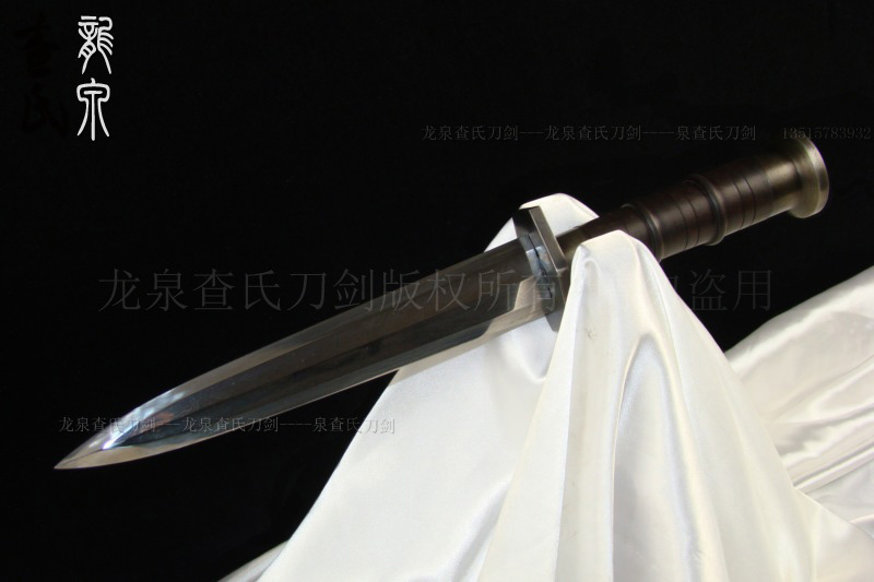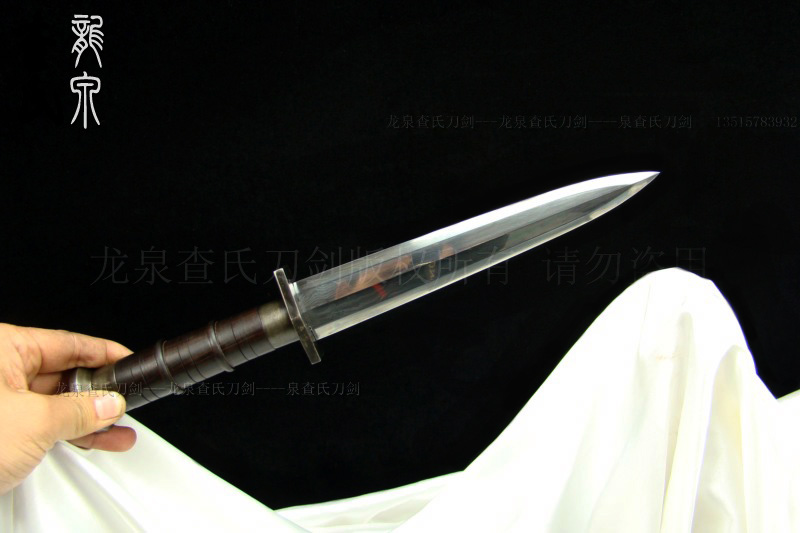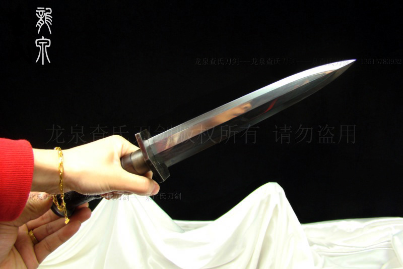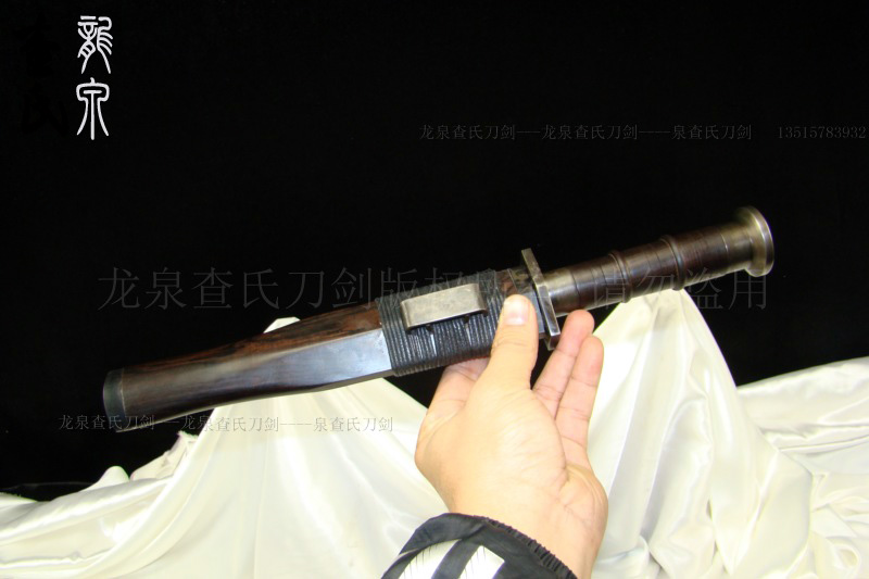 【规格】 全长:35cm,柄长:12cm,刃宽:3.2cm,刃长:20cm,鞘长:22cm,刃厚:0.7cm 【价位可选】 专业定做(以质论价,多种价位标准可供选择) 【刃材】 百炼钢 【工艺】 手工制作 手工精细研磨 【硬度】 57(HRC) 【鞘材】 名贵檀木 【柄材】 名贵檀木 【装具】 手工铁装 【赠品】 锦盒 架子 证书 剑袋 【其他】 手工产品,稍有差别,请以实物为准