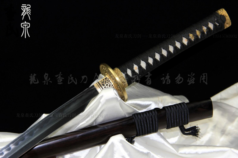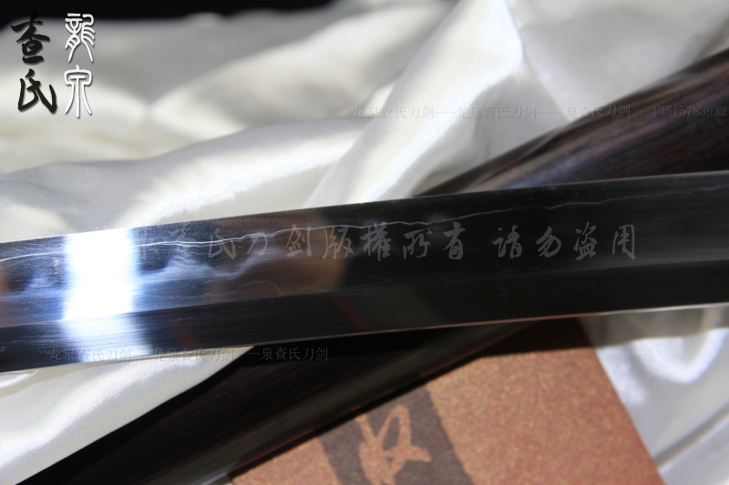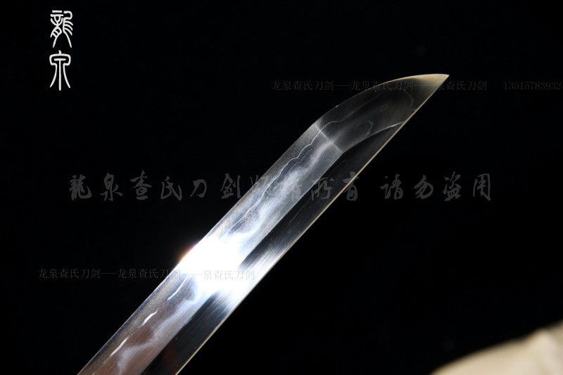 【工艺】 查氏混合进口玉钢手工锻打6.4万层花纹钢 , 本三枚工艺 敷土烧刃, 顶级细研磨+查氏研磨 (本三枚:详见商品图片中的图解)