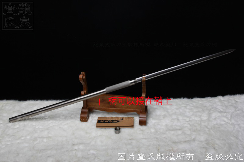 【规格】 刀入鞘全长:80cm左右, 刃长:55cm 柄长:20cm 刃宽:2.5cm 刃厚:0.8cm,接柄长135cm左右