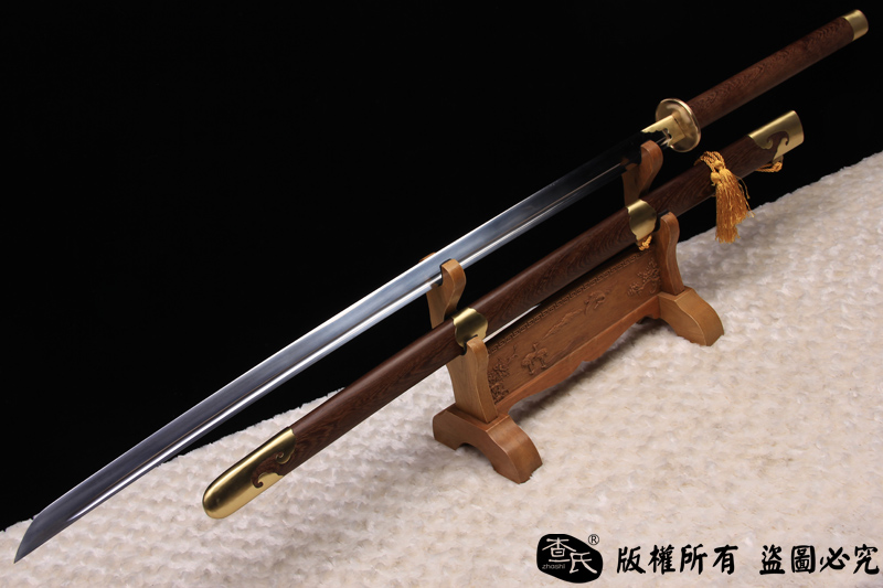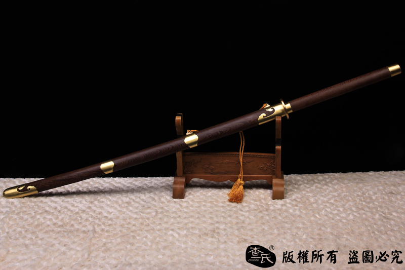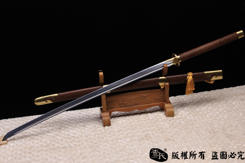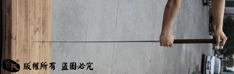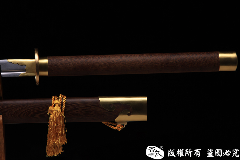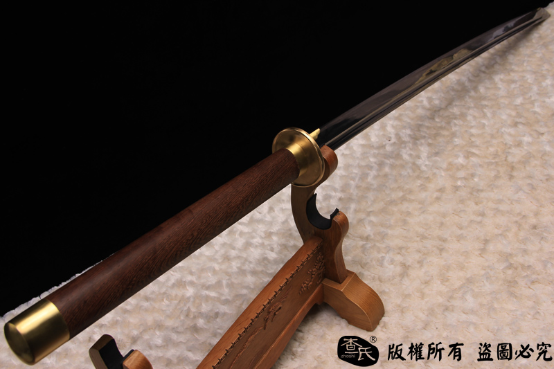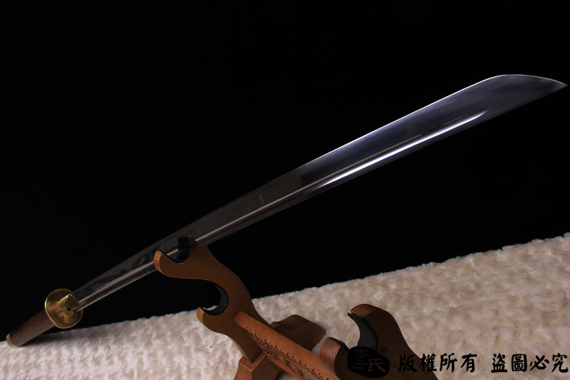 【作品规格】 全长: 140cm左右 , 柄长: 36cm , 刃长: 100cm ,刃宽:4cm , 刃厚: 1.1cm,重量:不带鞘 1.7kg左右, 带鞘 2.5kg左右