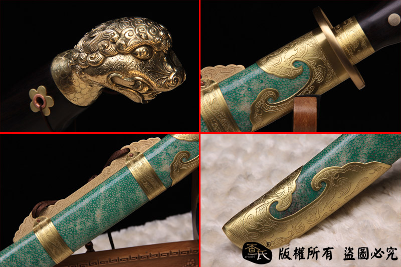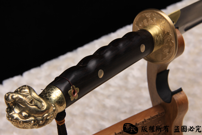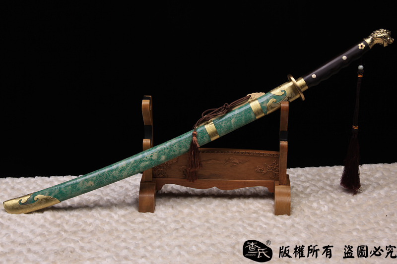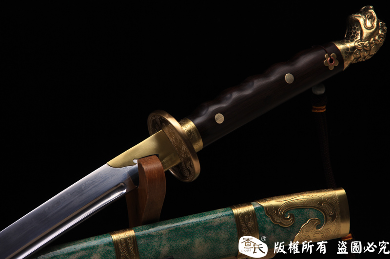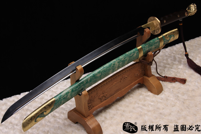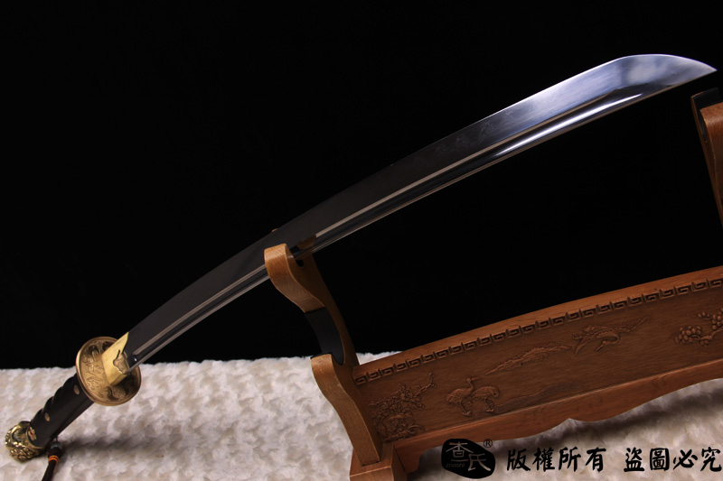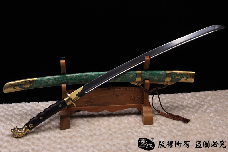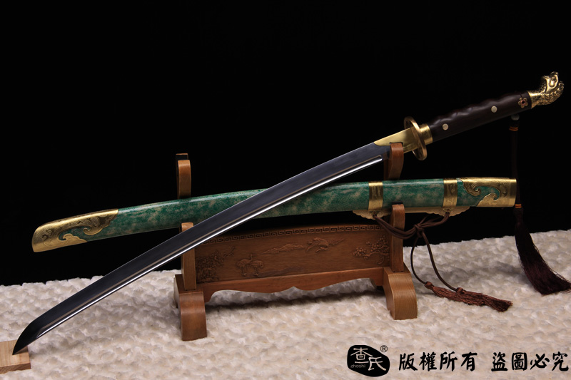 【作品规格】 全长: 107cm左右 , 柄长: 27cm , 刃长: 73cm ,刃宽:3.5cm , 刃厚: 1cm,重量:不带鞘 1.7kg左右 带鞘 2.3kg左右