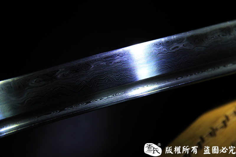 【剑身工艺】 查氏百炼花纹钢 手工打造 古法敷土烧刃热处理 手工精细磨