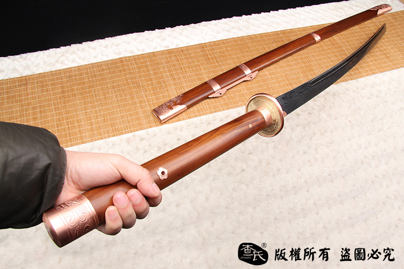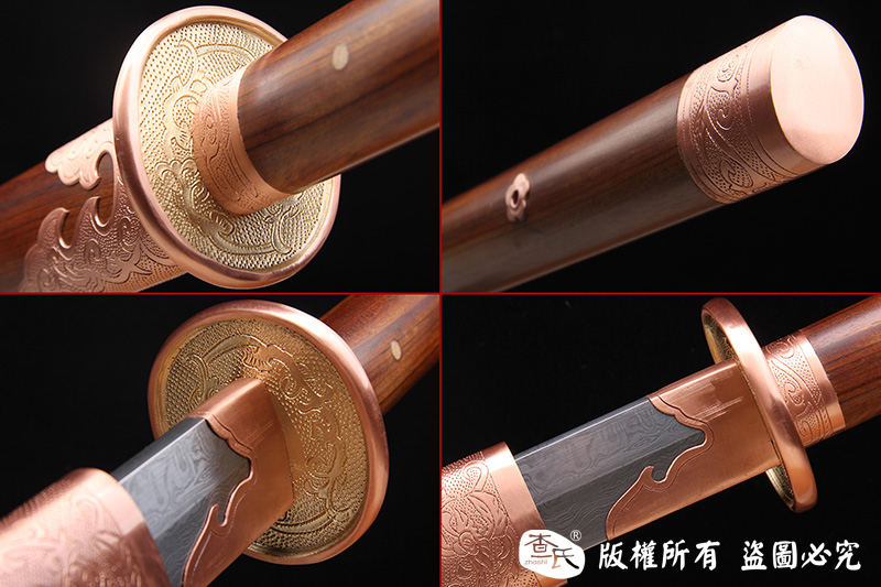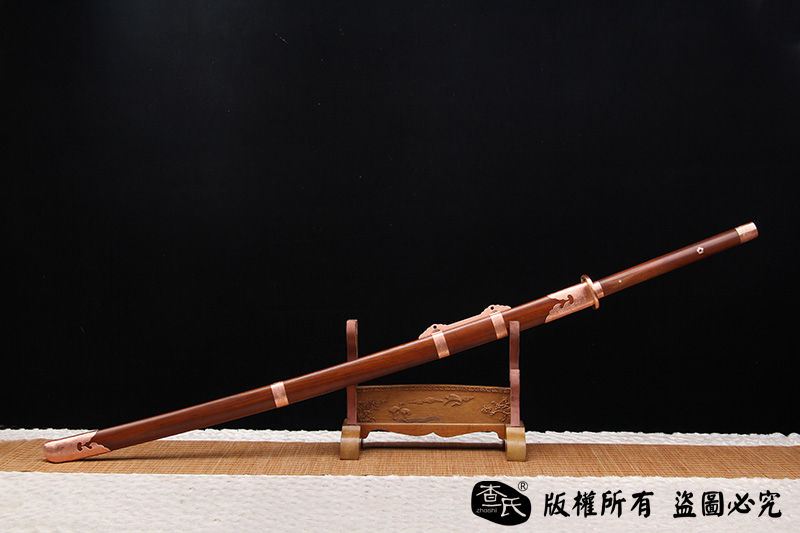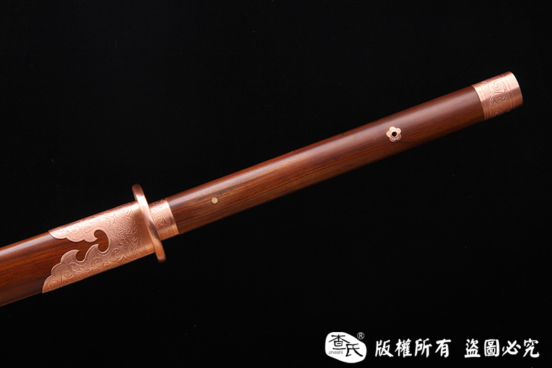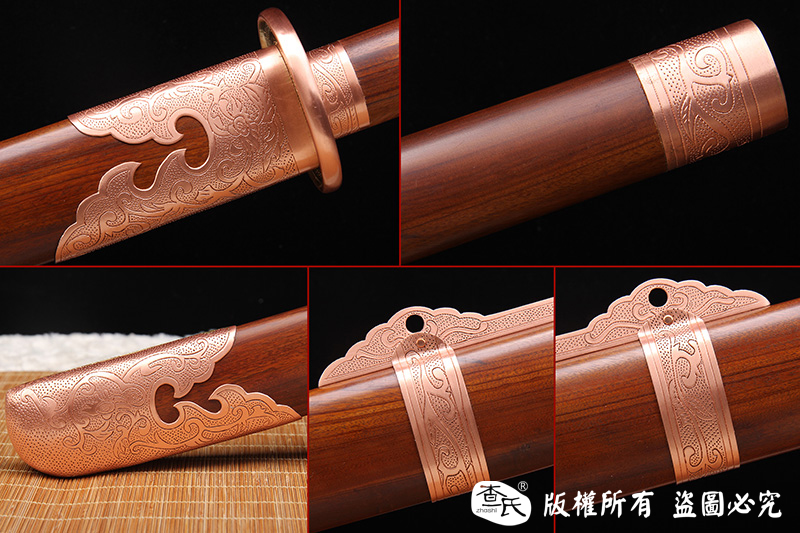 【作品装具】 手工包紫铜刻花 ,护手为实心黄铜古法紫铜包边