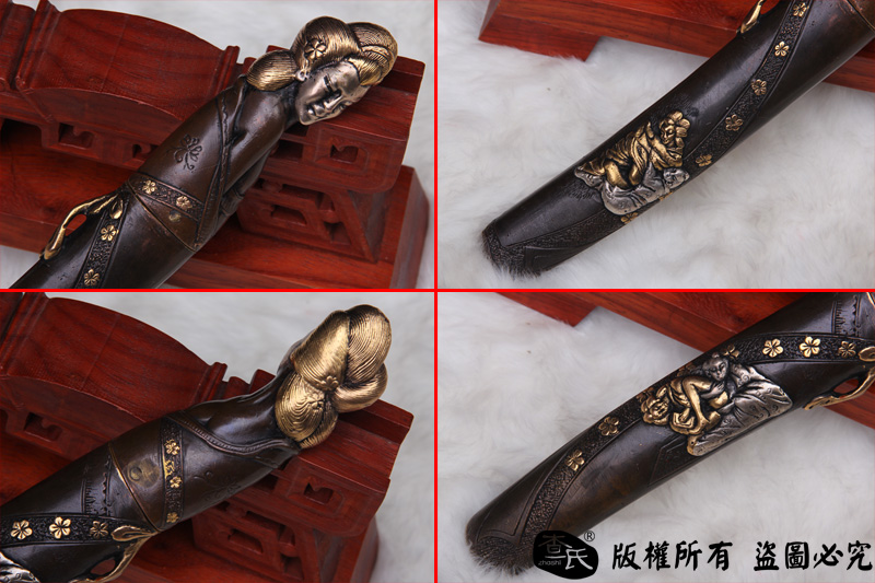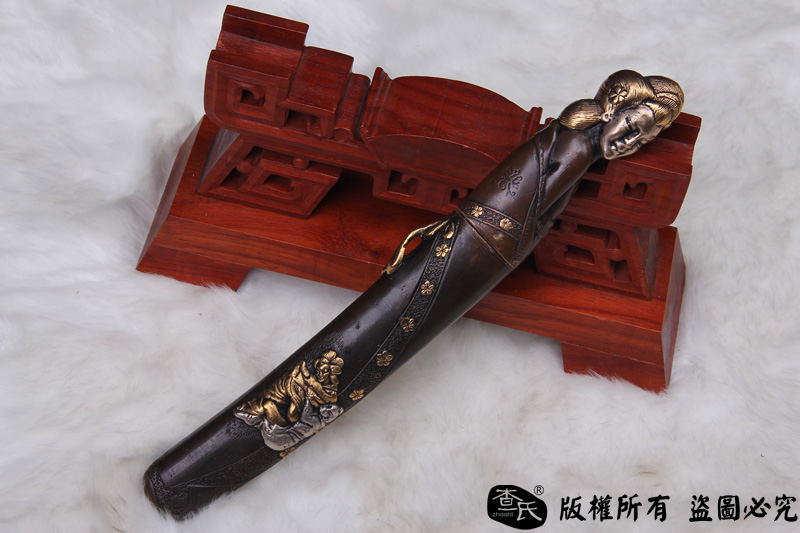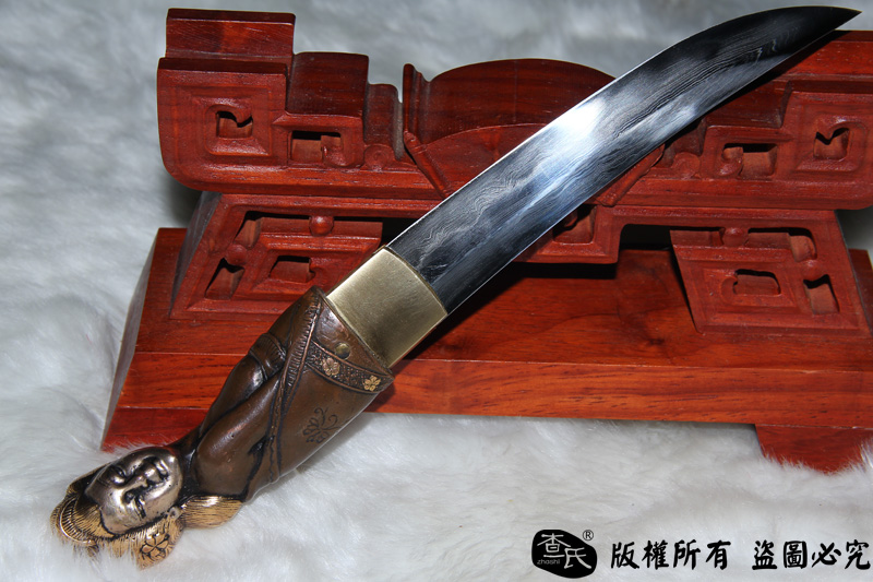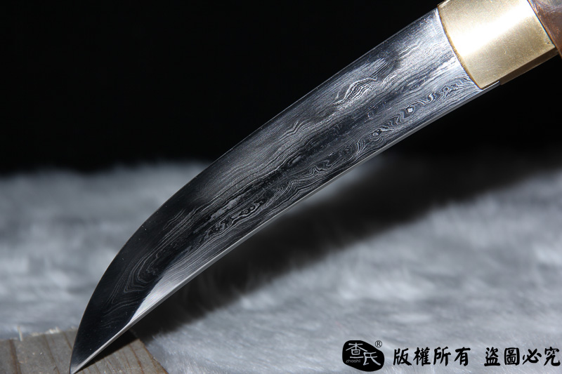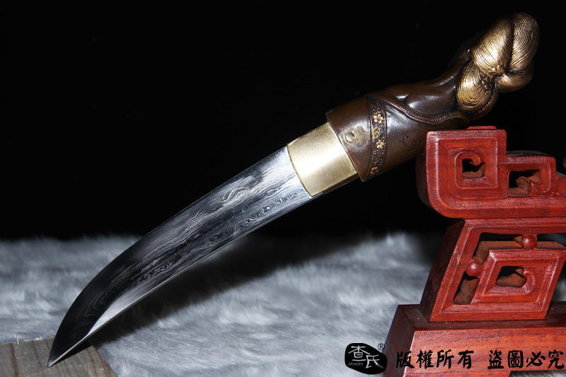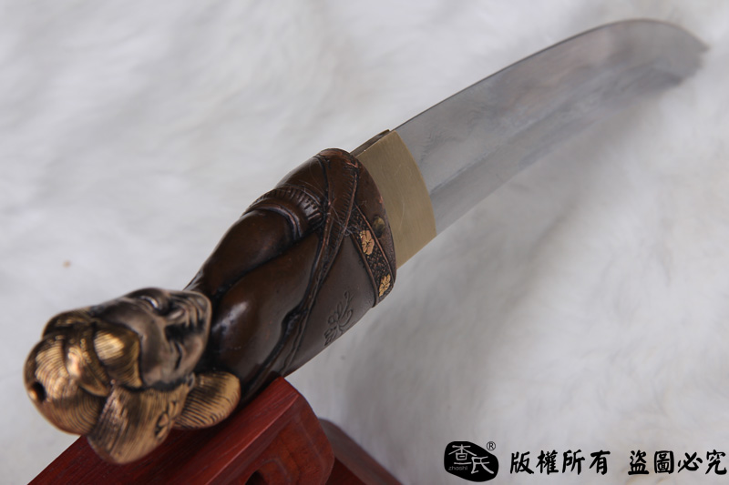 【作品规格】 全长:28cm左右, 柄长:10cm,刃长:16cm,刃宽:2.7cm,刃厚:0.7cm,重量:不带鞘 0.3kg左右 带鞘 0.55kg左右
