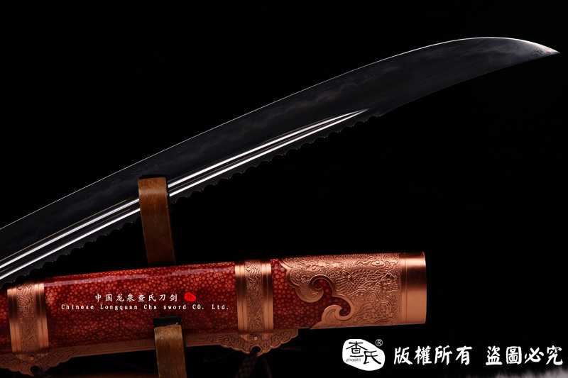 【作品规格】 全长:102cm左右, 柄长:26cm,刃长:73cm,刃宽:3.6cm,刃厚:0.7cm,重量:不带鞘 1.3kg左右 带鞘 2kg左右