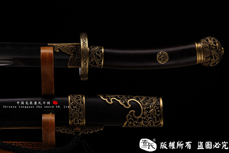 【作品规格】 全长:98cm左右, 柄长:23cm,刃长:72cm,刃宽:3.6cm,刃厚:0.7cm,重量:不带鞘 1.1kg左右 带鞘 1.8kg左右