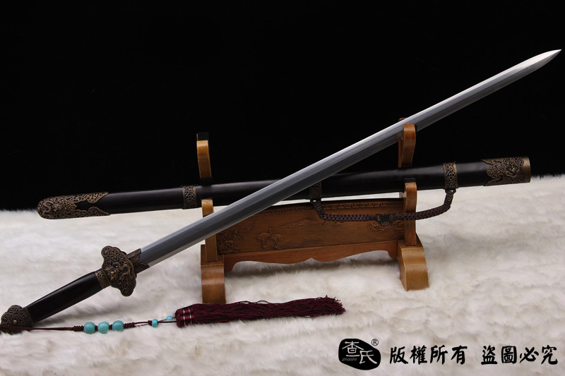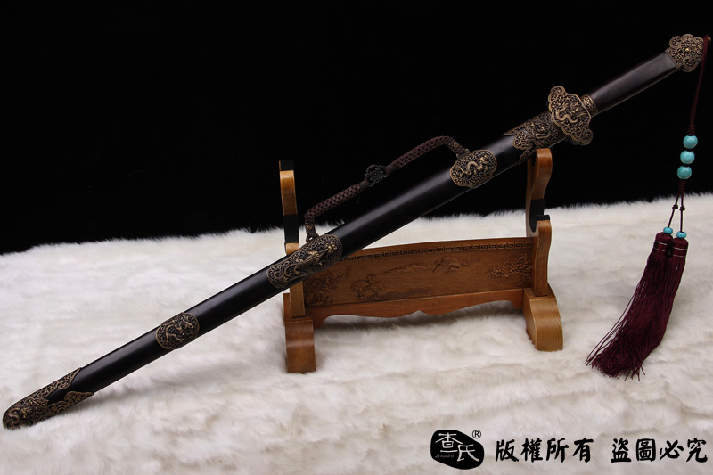 【作品规格】 全长:107cm左右, 柄长:18cm,刃长:80cm,刃宽:3.6cm,刃厚:1.0cm,重量:不带鞘 1.4kg左右 带鞘 2.2kg左右