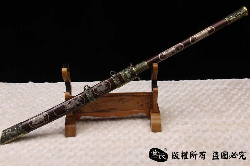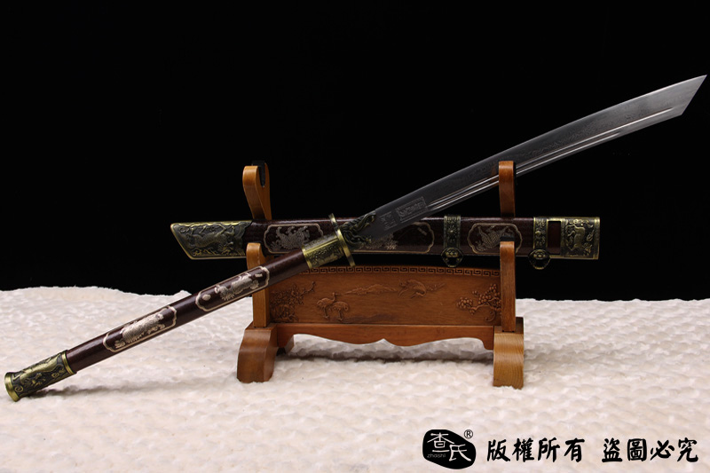 【作品规格】 全长:107cm左右, 柄长:48cm,刃长:53cm,刃宽:4.1cm,刃厚:0.7cm,重量:不带鞘 1.4kg左右 带鞘 2.2kg左右