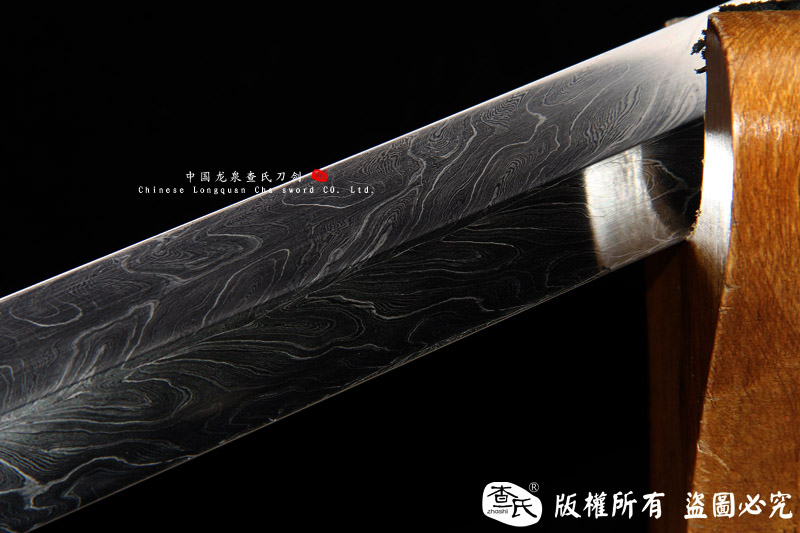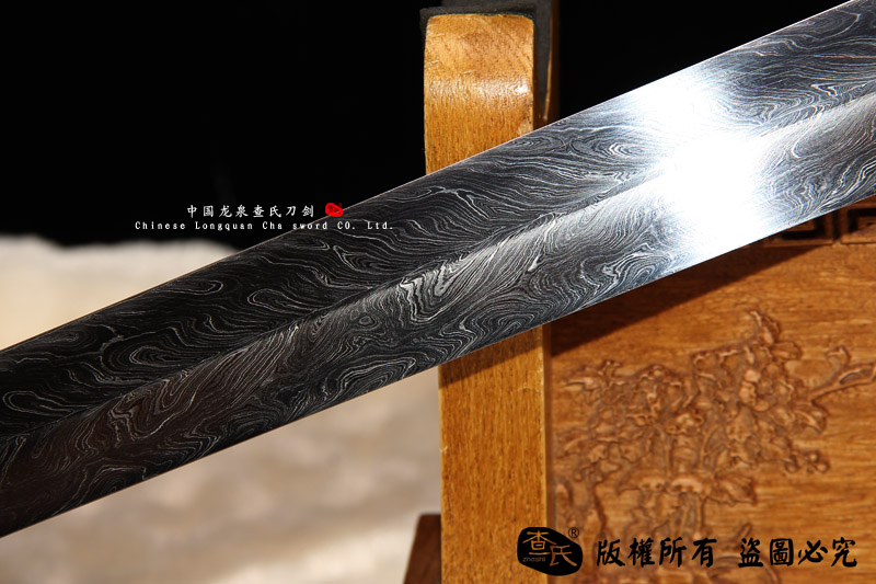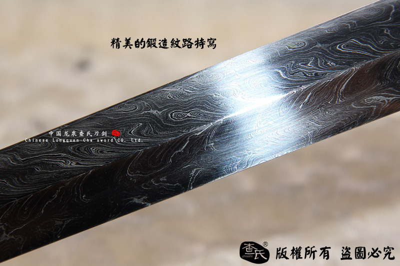 【剑身工艺】 百炼折叠查氏祖传旋焊工艺, 古法热处理 , 全手工精细研磨,收藏价值高,性能优越。