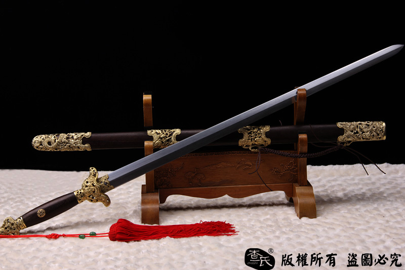 【作品规格】 全长:103cm左右, 柄长:21cm,刃长:77cm,刃宽:3.5cm,刃厚:0.8cm,重量:不带鞘 1.1kg左右 带鞘 1.8kg左右