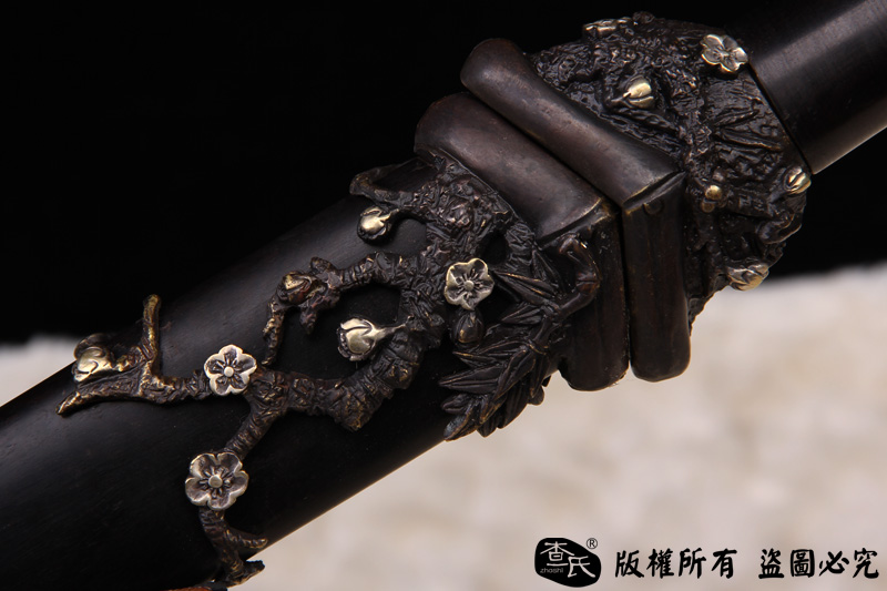 【作品规格】 全长:103cm左右, 柄长:19cm,刃长:76cm,刃宽:3.5cm,刃厚:0.7cm,重量:不带鞘 1.1kg左右 带鞘 1.9kg左右