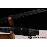 【剑身工艺】 全手工古法锻造, 混合毛铁打造水滴纹加敷土烧刃,精细研磨,地肌纹路如同细节图,强光下清晰明显,成色精美,刀中上品