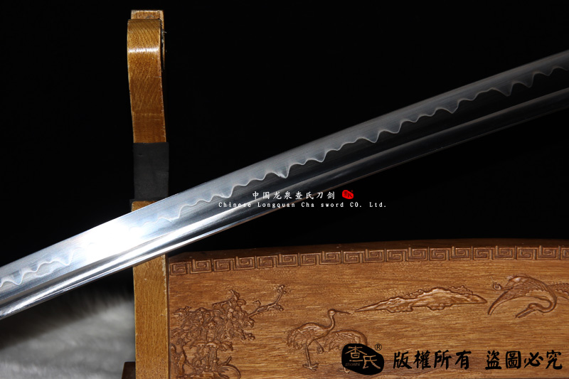 【作品规格】 全长:103cm左右, 柄长:26cm,刃长:72cm,刃宽:3.2cm,刃厚:0.7cm,重量:不带鞘 1kg左右 带鞘 1.2kg左右