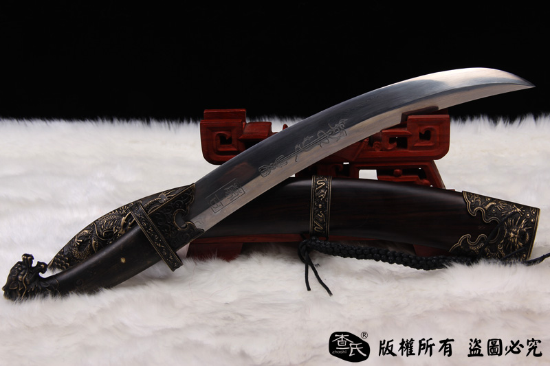 【作品规格】 全长:55cm左右, 柄长:12cm,刃长:33cm,刃宽:3.8cm,刃厚:0.8cm,重量:不带鞘 0.8kg左右 带鞘 1.4kg左右