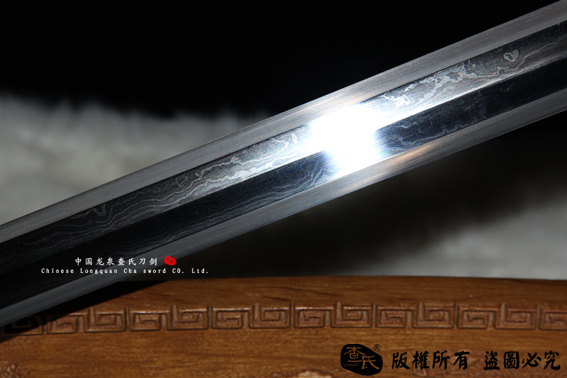 【剑身工艺】 查氏手工锻造百炼钢,根据出土汉剑1:1打造精致八面汉剑,古法敷土烧刃热处理,手工精细磨加上等研磨