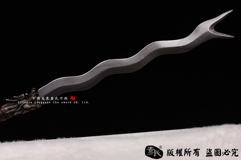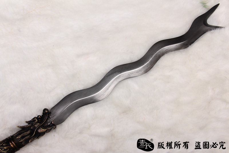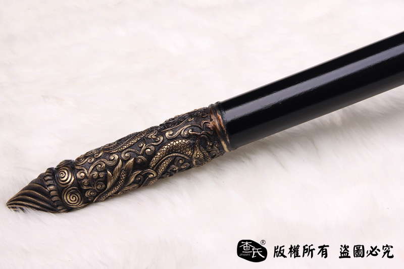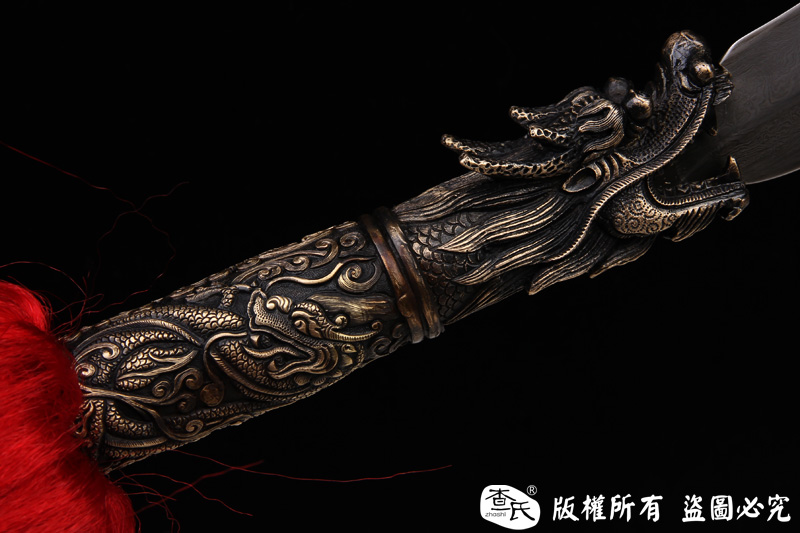【作品规格】 全长:220cm左右, 柄长:160cm,刃长(带龙头):60cm,刃宽:4.4cm,刃厚:0.8cm,重量:2.5kg左右