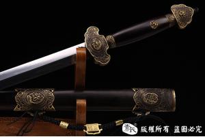 【作品规格】 全长:104cm左右, 柄长:20cm,刃长:77cm,刃宽:3.5cm,刃厚:0.8cm,重量:不带鞘 1.1kg左右 带鞘 2.1kg左右