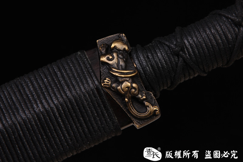 【作品规格】 全长:107cm左右, 柄长:26cm,刃长:71cm,刃宽:3.4cm,刃厚:0.8cm,重量:不带鞘 1.0kg左右 带鞘 1.8kg左右