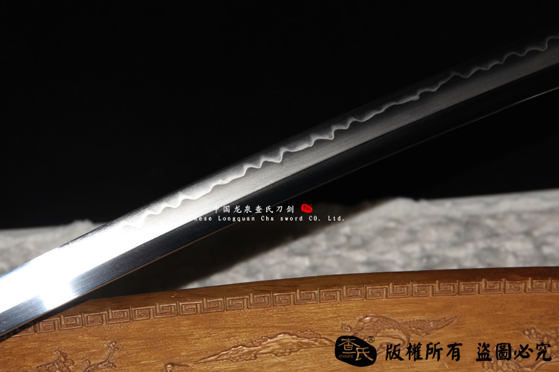 【剑身工艺】 高碳钢手工打造,敷土烧刃处理,手工精细研磨
