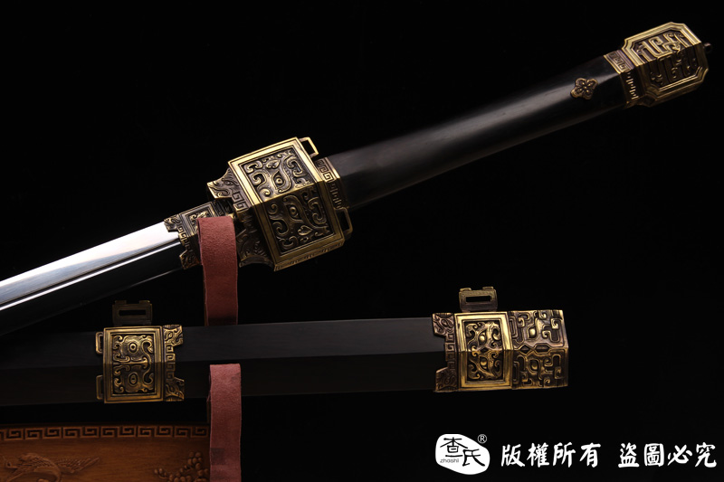 此剑外饰设计了九个鼎,剑首采用草龙去表达一个古体言字,集一言九鼎于剑,再结合千锤百炼的宝剑正义之气,所以设计了这把《信》剑。