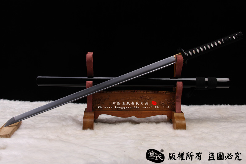 【作品规格】 全长:103cm左右, 柄长:26cm,刃长:72cm,刃宽:3.2cm,刃厚:0.7cm,重量:不带鞘 1.0kg左右,带鞘 1.3kg左右