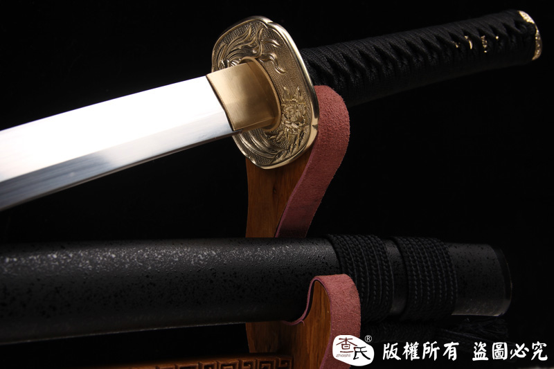 【作品规格】 全长:103cm左右, 柄长:26cm,刃长:72cm,刃宽:3.2cm,刃厚:0.7cm,重量:不带鞘 1.1kg左右  带鞘 1.4kg左右
