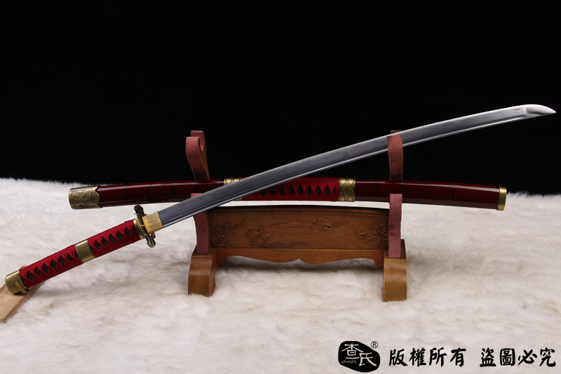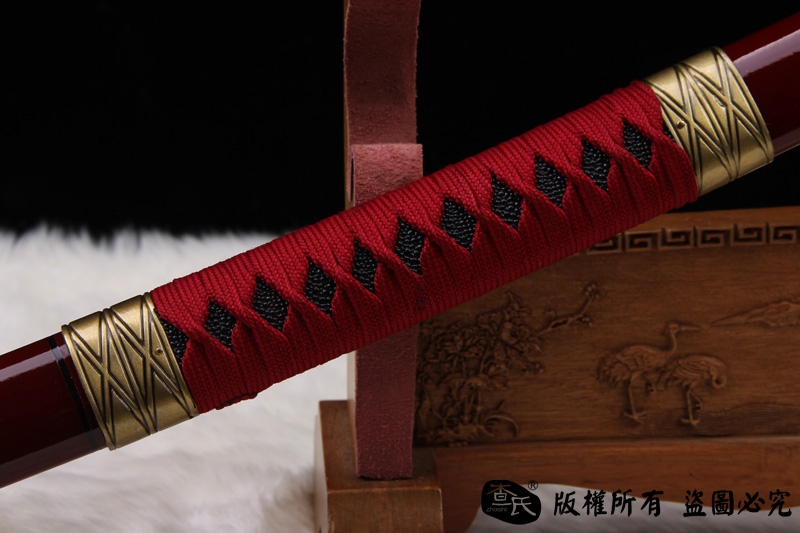 【作品规格】 全长:105cm左右, 柄长:26cm,刃长:72cm,刃宽:3.2cm,刃厚:0.7cm,重量:不带鞘 1.0kg左右 带鞘 1.4kg左右