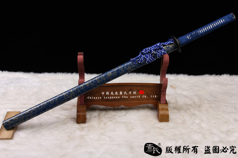 全长:104cm左右 【剑身工艺】 花纹钢手工打造,古法热处理,手工精细磨,蓝色为钢铁烤蓝处理