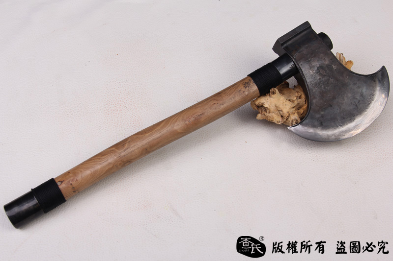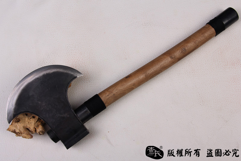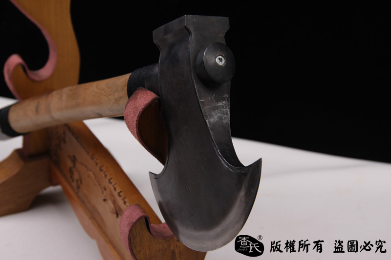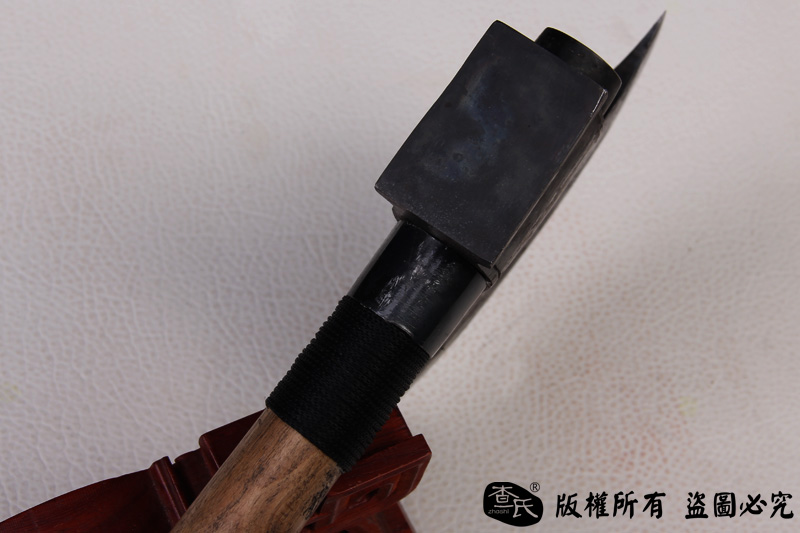 【作品简介】 本店商品均实物拍摄,细节清晰,可仔细比较。 【作品规格】 全长:54cm左右, 柄长:37cm,重量:不带鞘 2.1kg左右 【剑身工艺】 全古法碳钢打造夹百炼钢工艺,古法热处理,手工精细磨。 【作品鞘材】 皮套 【刃口硬度】 60HRC 【作品柄材】 本地一种专用高强度藤木 【作品赠品】 锦盒 架子 证书 【其他事项】 手工产品,重量尺寸稍有误差,请以实物为准。 赠品里面的架子并不是图上的展示的架子,图片架子另外加180。