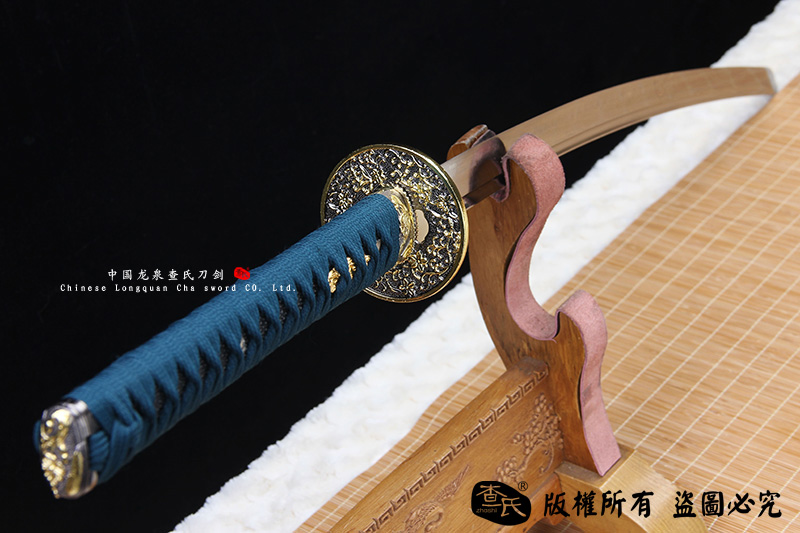 【作品规格】 全长:103cm左右,柄长:26cm,刃长:72cm,刃厚:0.7cm,刃宽3.2cm,重量:不带鞘0.97kg左右,带鞘1.18kg左右