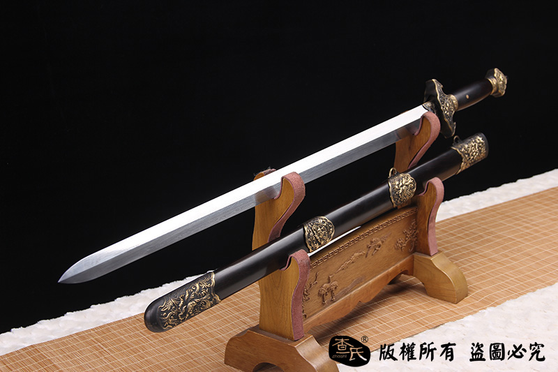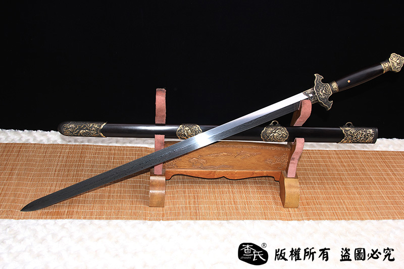 【作品规格】 全长:103cm左右,柄长:21cm,刃长:77cm,刃厚:0.8cm,刃宽3.5cm,重量:不带鞘1.2kg左右,带鞘2kg左右