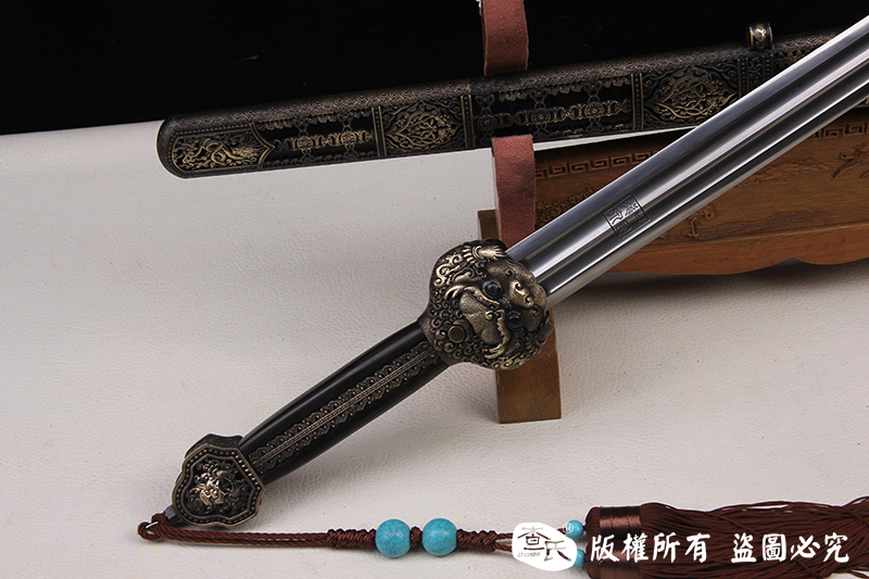 【作品规格】 全长:95cm左右, 柄长:18cm,刃长:69cm,刃宽:4.2cm,刃厚:1.0cm,重量:不带鞘 1.4kg左右 带鞘 2.8kg左右