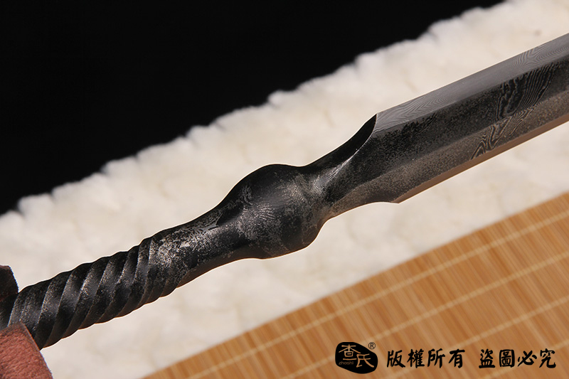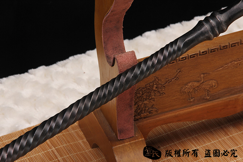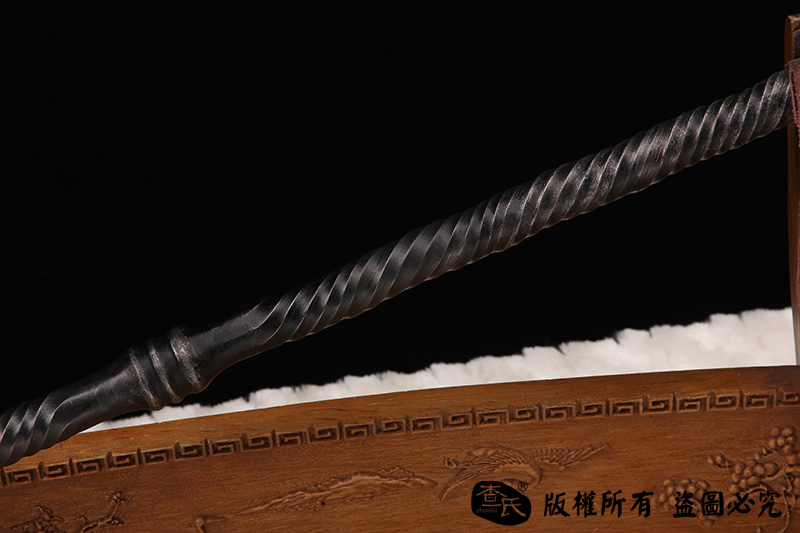 【作品简介】 本店商品均实物拍摄,细节清晰,可仔细比较。 【作品规格】 全长:151cm左右,柄长:101cm,刃长:50cm,刃宽:3.6cm,刃厚:1.1cm,重量:不带鞘2.9kg左右 【作品工艺】 百炼钢手工高难度扭转一体打造,古法热处理,手工精细磨 【作品硬度】 57HRC 【作品赠品】 锦盒 架子 证书 【其他事项】 手工产品,重量尺寸稍有误差,请以实物为准。 赠品里面的架子并不是图上的展示的架子,图片架子另外加180。