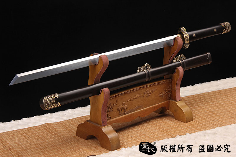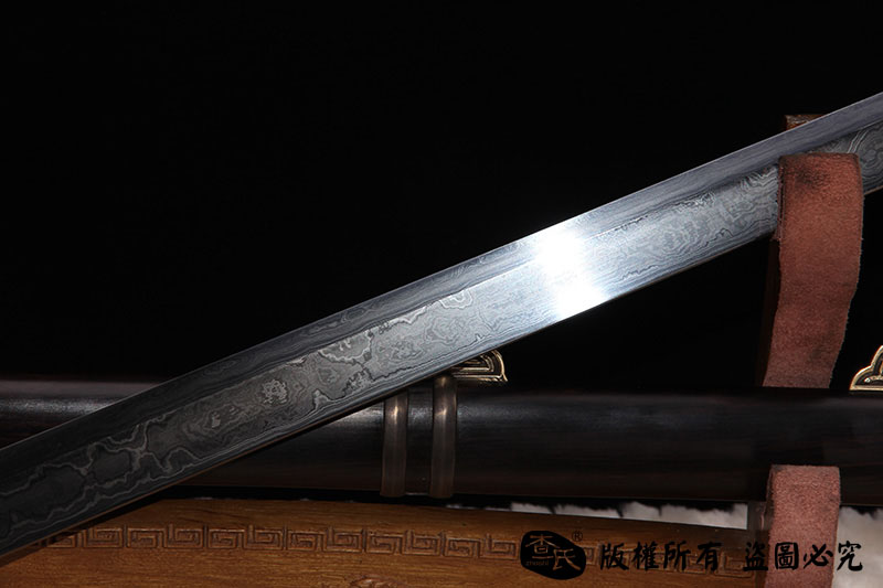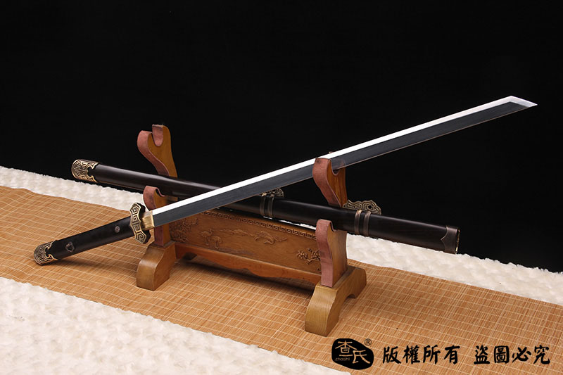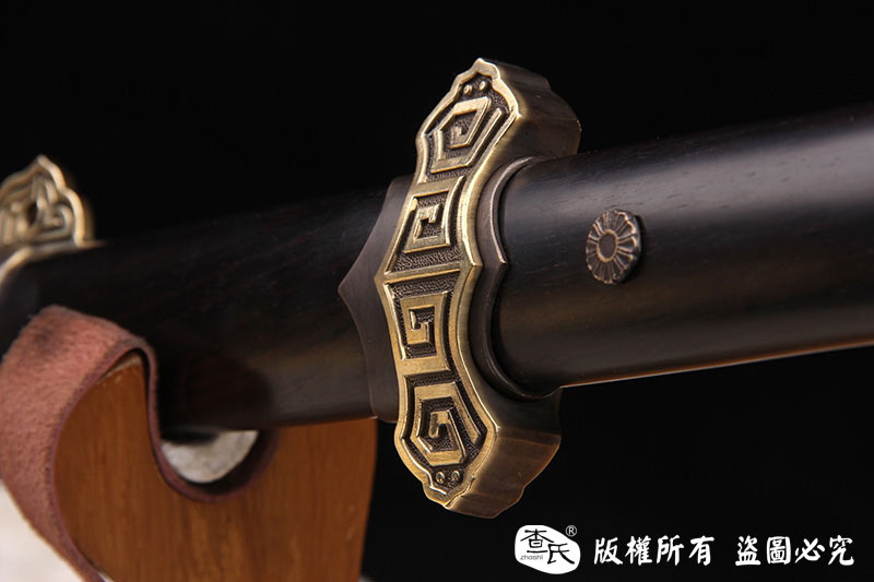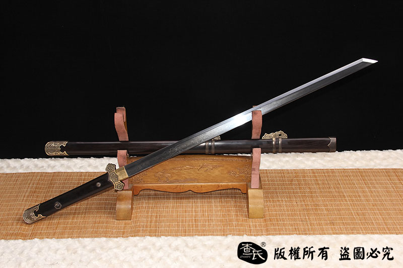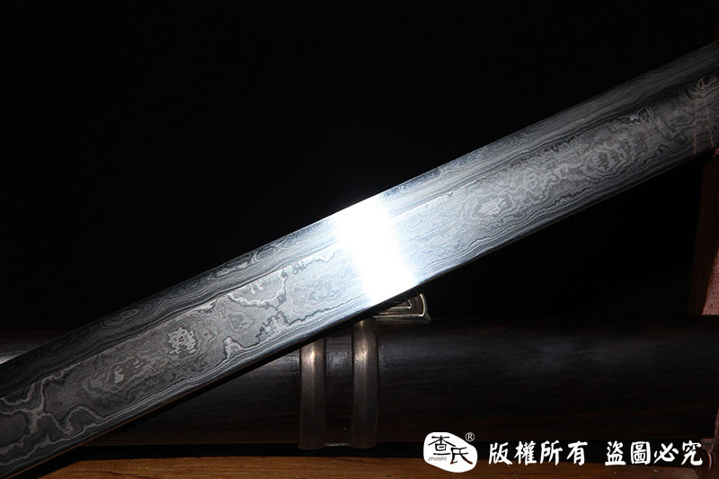 【作品规格】 全长:102cm左右,柄长:25cm,刃长:72cm,刃宽:3.2cm,刃厚:0.6cm,重量:不带鞘1.2kg左右,带鞘1.6kg左右。