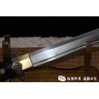 【作品简介】 本店商品均实物拍摄,细节清晰,可仔细比较。 【作品规格】 全长:52cm左右,柄长:15cm,刃长:32cm,刃宽:3.2cm,刃厚:0.7cm,重量:不带鞘0.6kg左右,带鞘0.9kg左右 【刃材工艺】 百炼钢手工打造,古法热处理,手工精细磨,性能不错 ,值得推荐 【作品鞘材】 名贵黑檀木 【作品装具】 精细铜装 【作品硬度】 57HRC 【作品柄材】 名贵黑檀木 【作品赠品】 锦盒 图片款架子 证书 【其他事项】 手工产品,重量尺寸稍有误差,请以实物为准。
