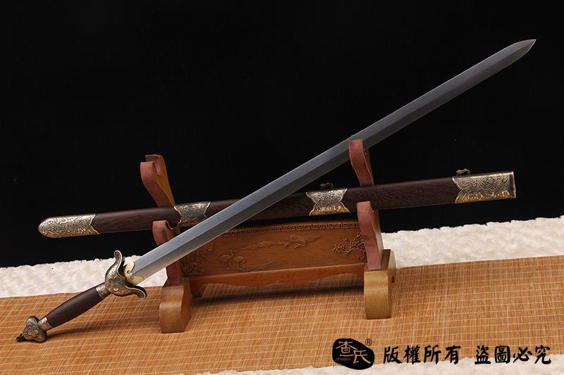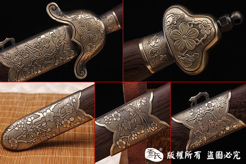【作品简介】 本店商品均实物拍摄,细节清晰,可仔细比较。【作品规格】 全长:103cm左右,柄长:19cm,刃长:77cm,刃宽:3.5cm,刃厚:0.8cm,重量:不带鞘0.98kg左右,带鞘1.45kg左右。【刃材工艺】 花纹钢手工打造,古法热处理,手工精细磨,花纹精美,性能不错,非常值得推荐,且价格实惠【作品鞘材】 上等鸡翅木 ,整体风格非常搭配【作品装具】 精细铜装做旧