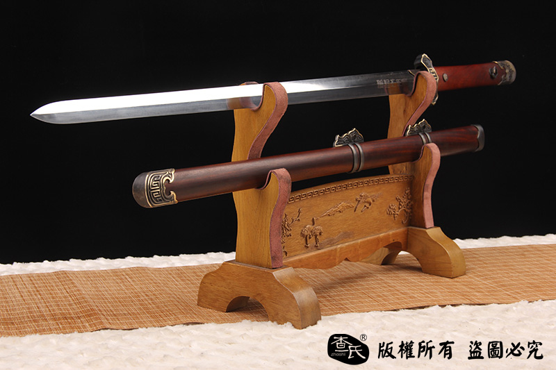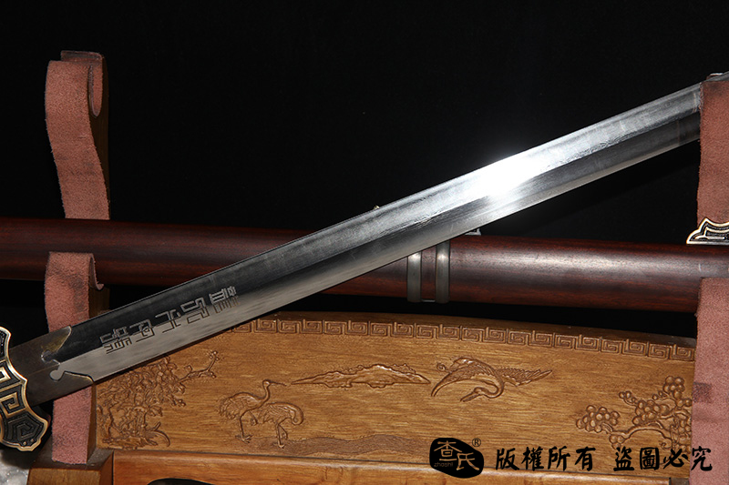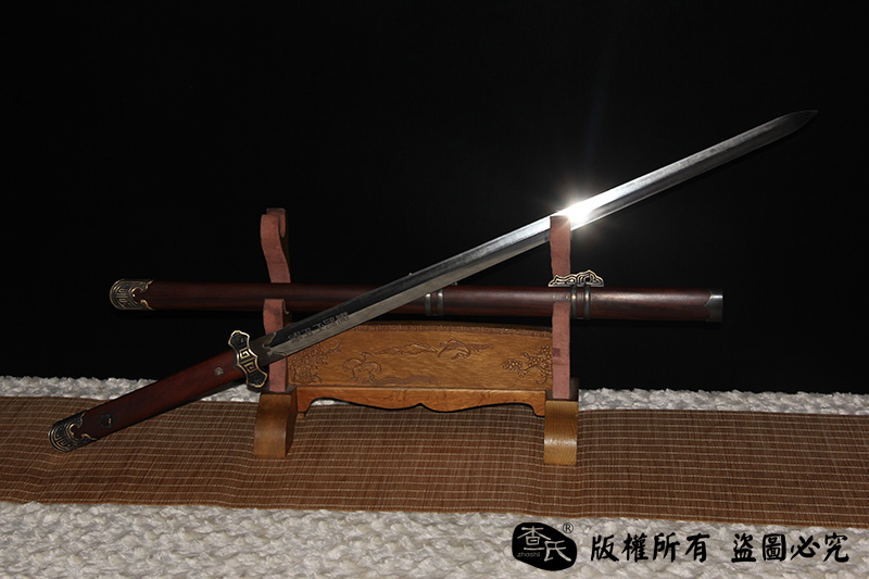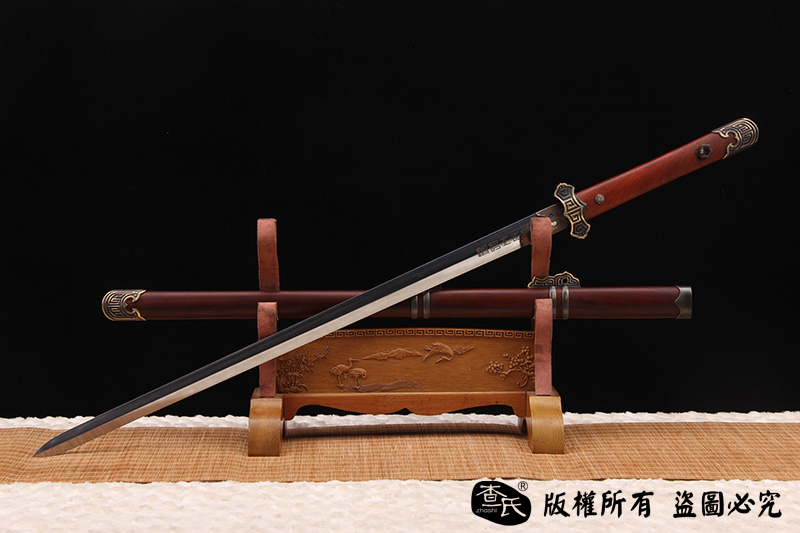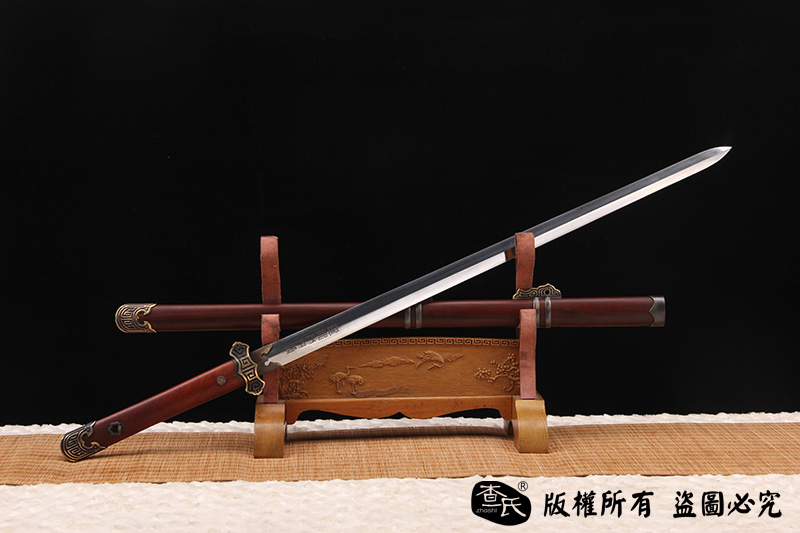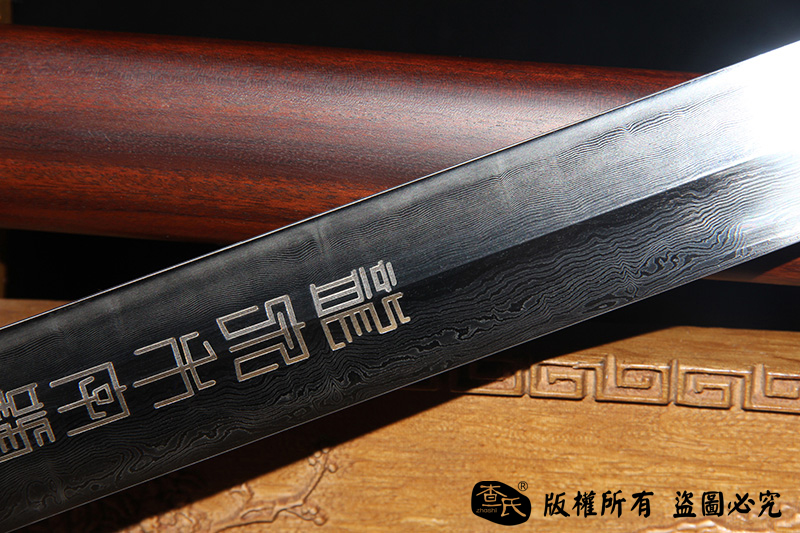 【作品简介】 本店商品均实物拍摄,细节清晰,可仔细比较。 【作品规格】 全长:100.5cm左右,柄长:24.5cm,刃长:72.5cm,刃宽:3.3cm,刃厚:0.8cm,重量:不带鞘1kg左右,带鞘1.5kg左右。 【刃材工艺】 【作品鞘材】 【作品装具】 【作品硬度】 HRC 【作品柄材】 【作品赠品】 锦盒 架子 证书 【其他事项】 手工产品,重量尺寸稍有误差,请以实物为准。 赠品里面的架子并不是图上的展示的架子,图片架子另外加180。