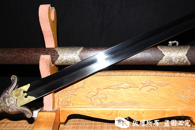 【作品规格】 全长:103cm左右,柄长:19cm,刃长:77cm,刃宽:3.5cm,刃厚:0.8cm,重量:不带鞘0.8kg左右,带鞘1.33kg左右。