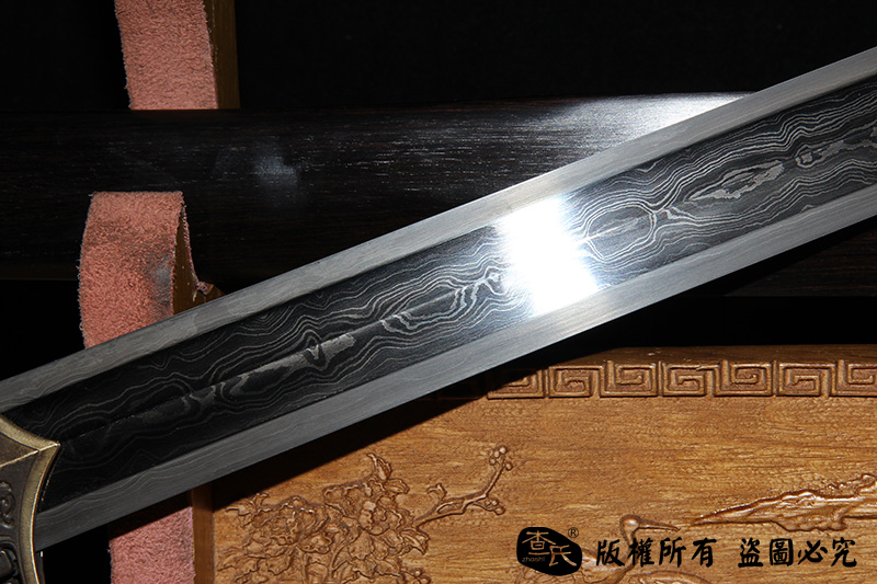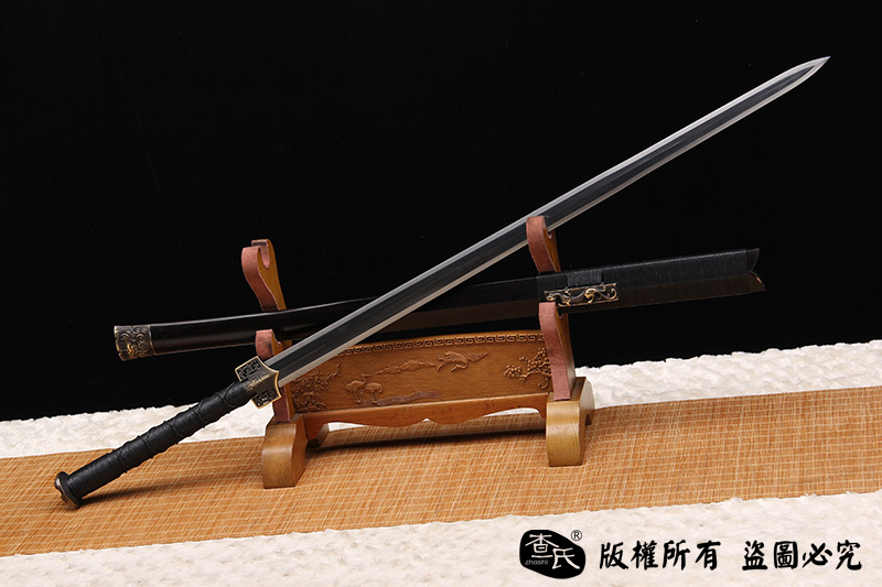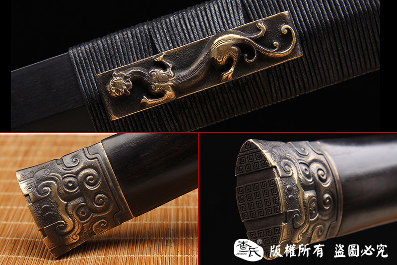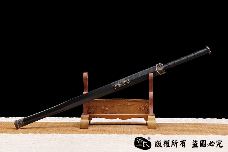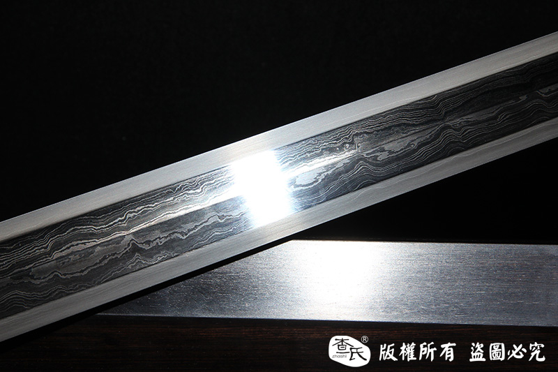【作品规格】 全长:108cm左右,柄长:26cm,刃长:77cm,刃宽:3.6cm,刃厚:0.8cm,重量:不带鞘1.1kg左右,带鞘1.7kg左右。