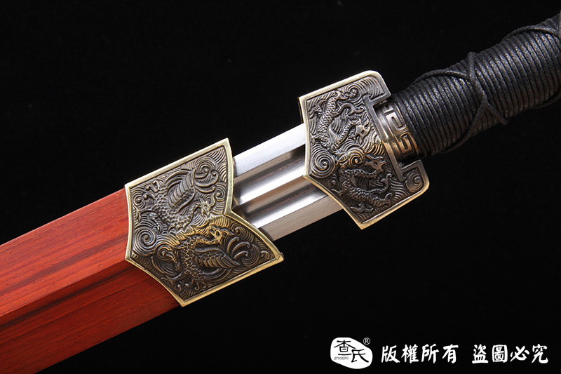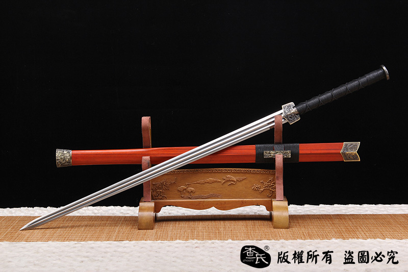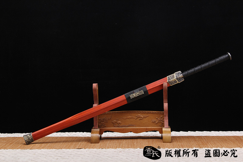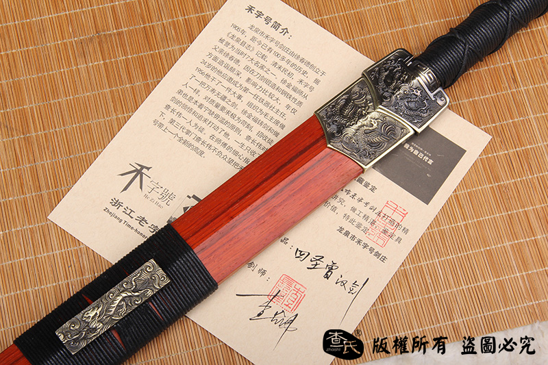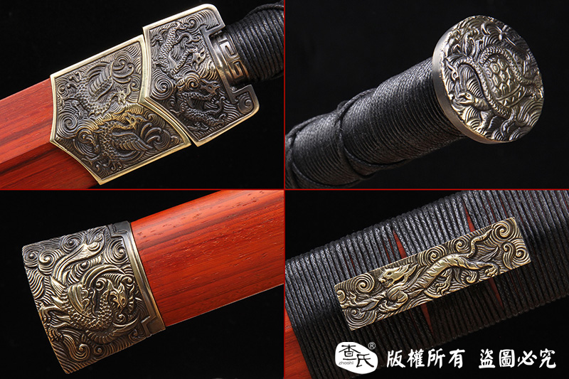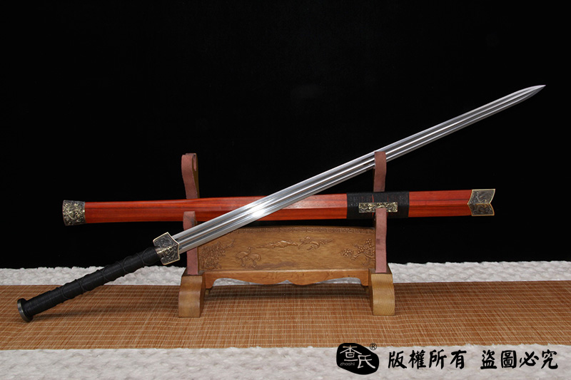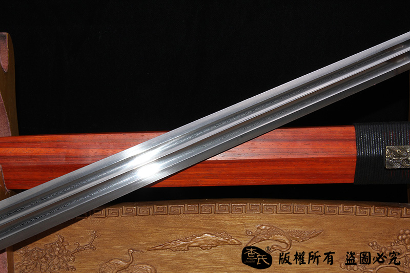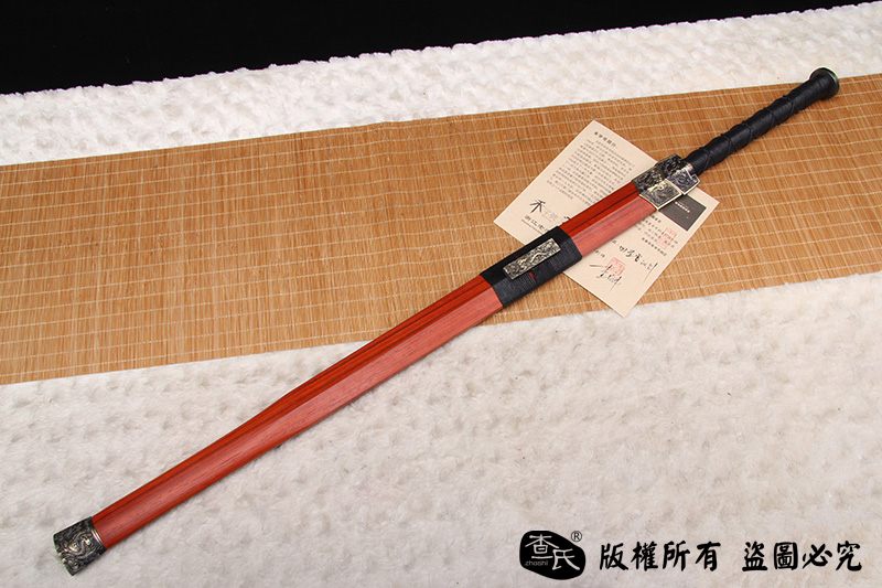 【作品规格】 全长:108cm左右,柄长:25cm,刃长:76cm,刃宽:3.5cm,刃厚:0.9cm,重量:不带鞘0.9kg左右,带鞘1.3kg左右。