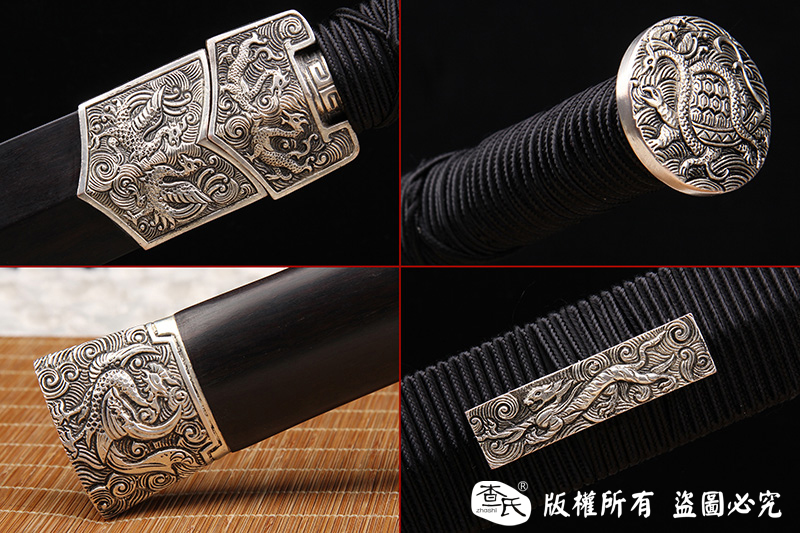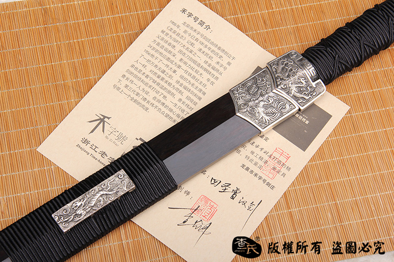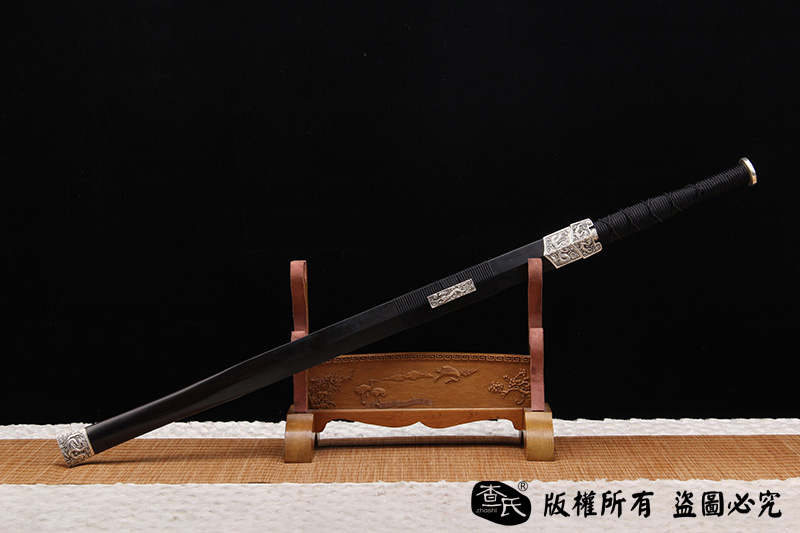 【作品规格】 全长:108cm左右,柄长:25cm,刃长:76cm,刃宽:3.6cm,刃厚:0.9cm,重量:不带鞘1.3kg左右,带鞘1.9kg左右。