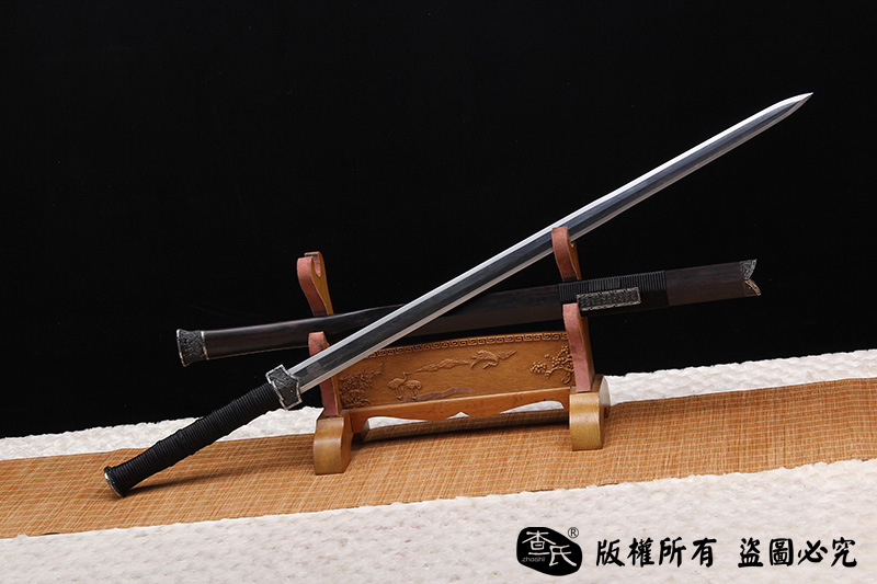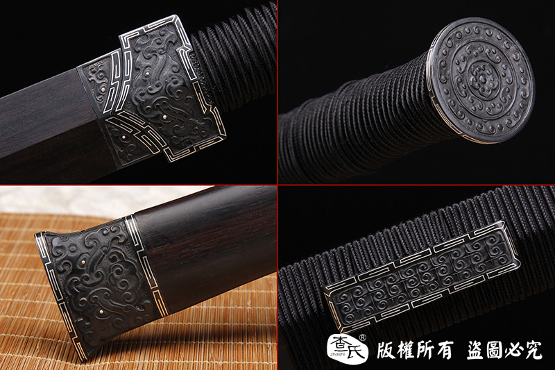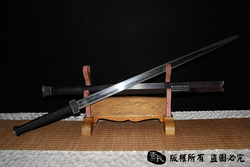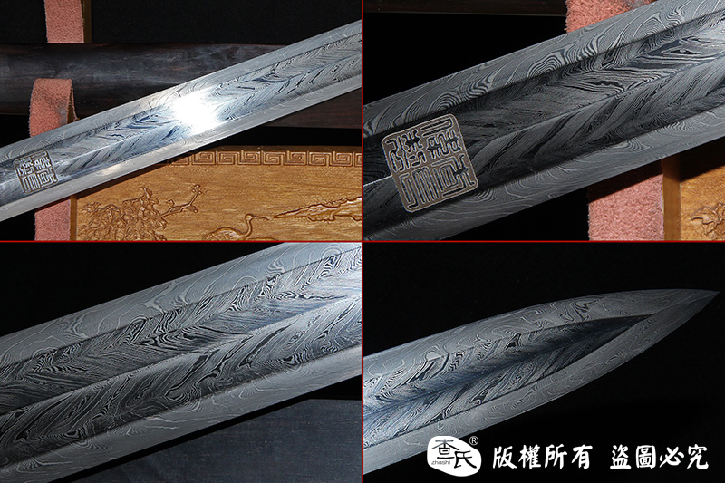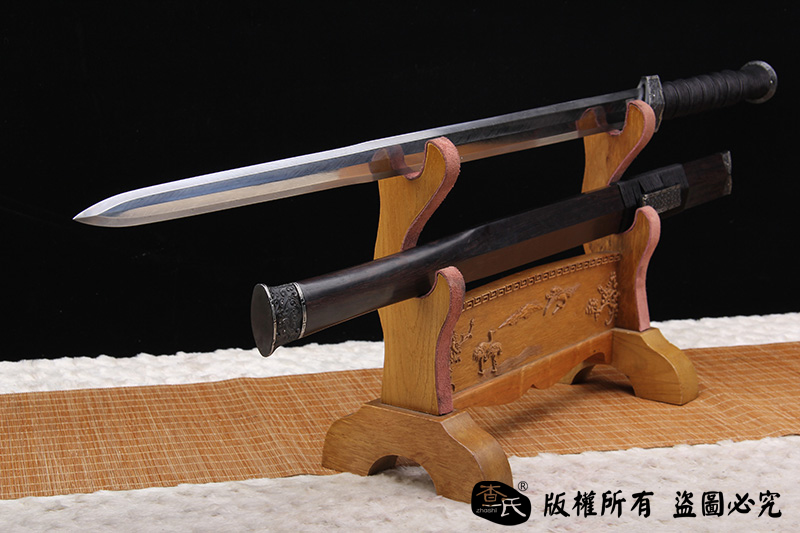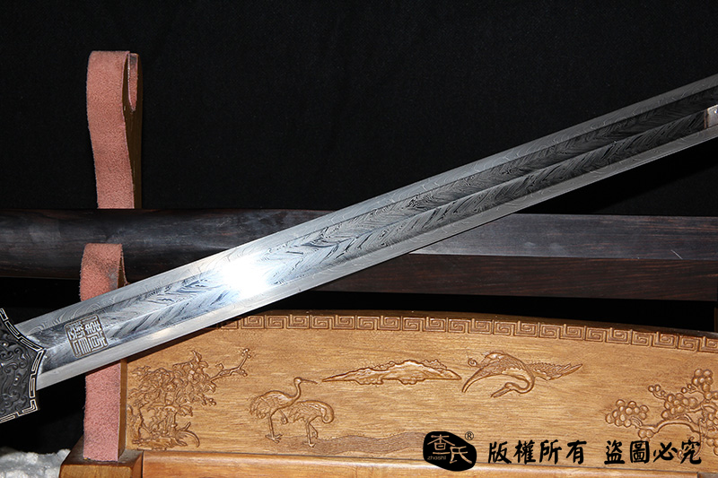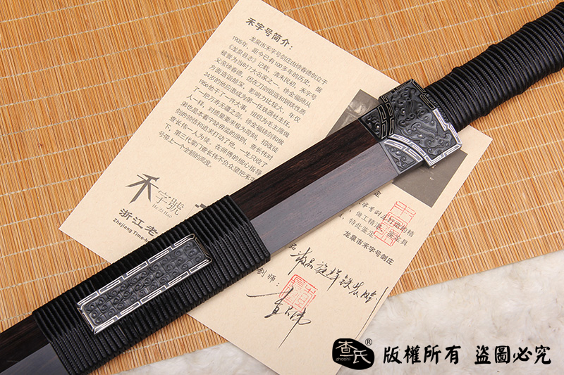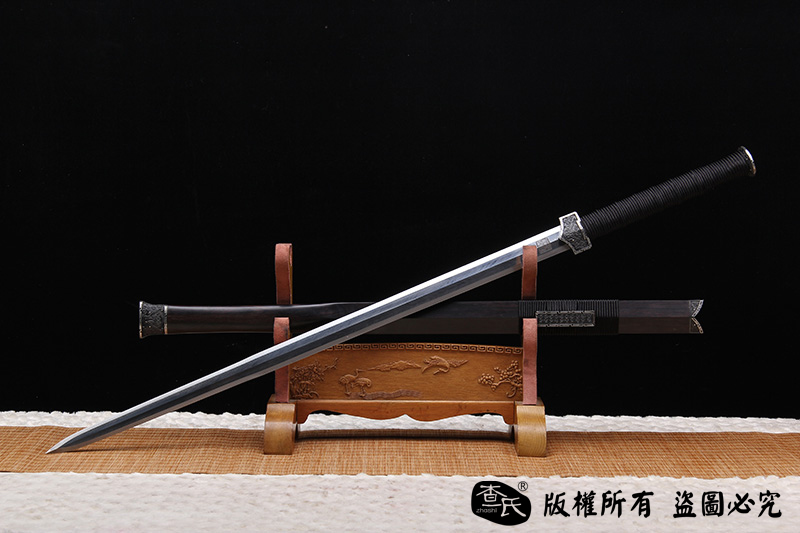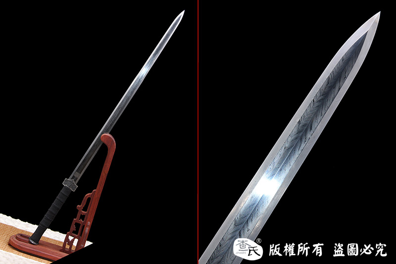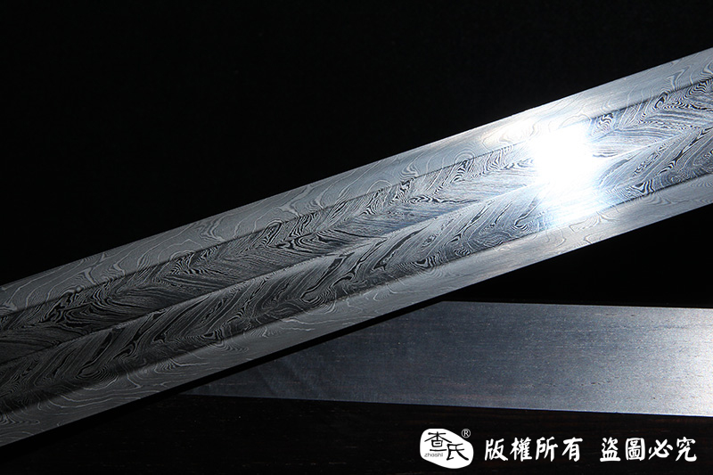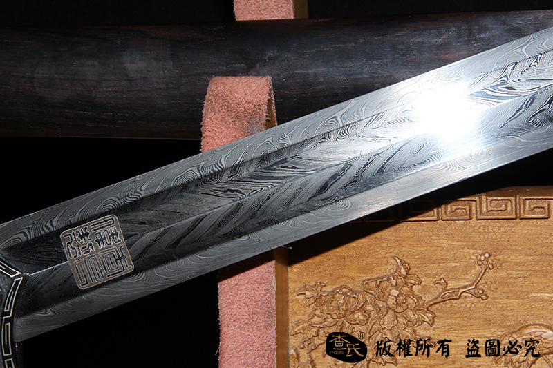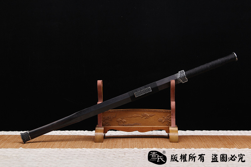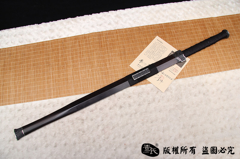 【作品规格】 全长:108cm左右,柄长:26cm,刃长:77cm,刃宽:3.7cm,刃厚:0.9cm,重量:不带鞘1.4kg左右,带鞘2.0kg左右。