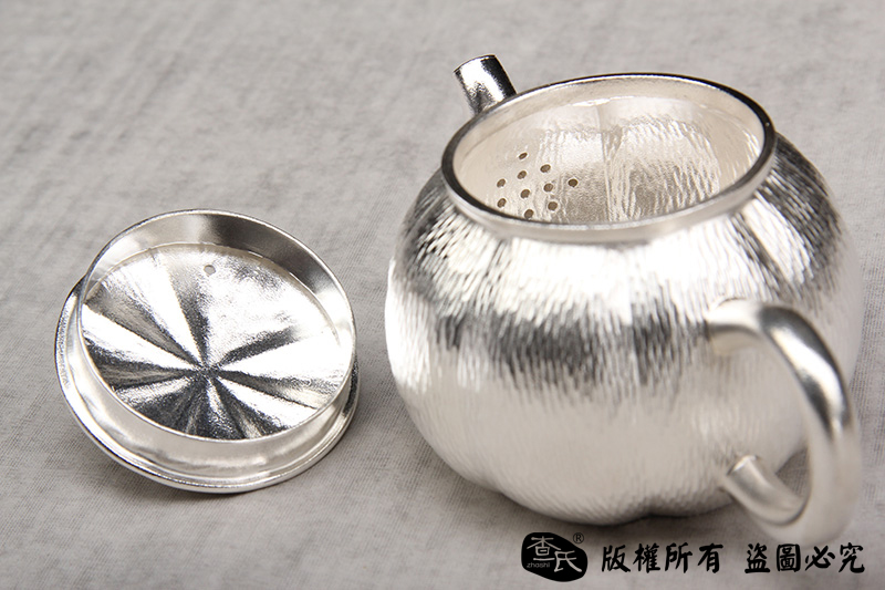 【作品简介】 本店商品均实物拍摄,细节清晰,可仔细比较。 【作品规格】 长:13.02cm左右,宽:8.4cm,高:7.3cm,重:239克左右。 999纯银手工壶,手工雕刻