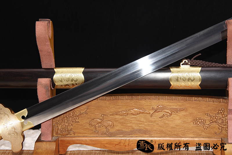 【作品简介】 本店商品均实物拍摄,细节清晰,可仔细比较。 【作品规格】 全长:103cm左右,柄长:20cm,刃长:77cm,刃宽:3.5cm,刃厚:0.83cm,重量:不带鞘1.1kg左右,带鞘1.72kg左右。 【刃材工艺】 【作品鞘材】 【作品装具】 【作品硬度】 HRC 【作品柄材】 【作品赠品】 锦盒 架子 证书 【其他事项】 手工产品,重量尺寸稍有误差,请以实物为准。 赠品里面的架子并不是图上的展示的架子,图片架子另外加180。
