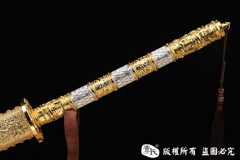 【作品规格】 全长:110cm左右,柄长:40cm,刃长:66cm,刃宽:4.3cm,刃厚:0.8cm,重量:不带鞘1.9kg左右,带鞘2.7kg左右。