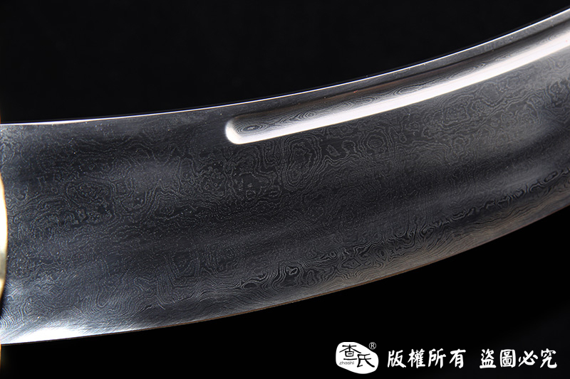 【作品规格】 全长:70cm左右,柄长:18cm,刃长:50cm,刃宽:6.5cm,刃厚:0.7cm,重量:不带鞘1.4kg左右,带鞘2.4kg左右。