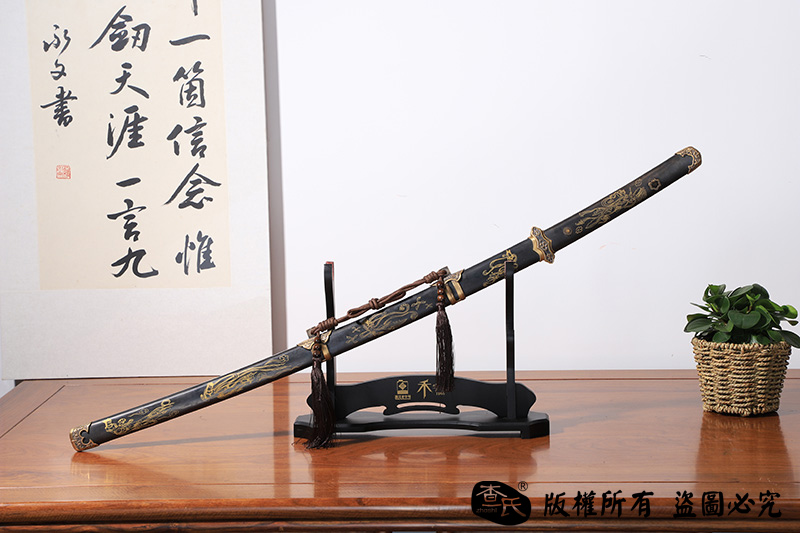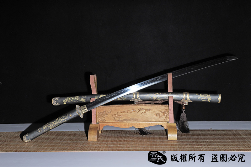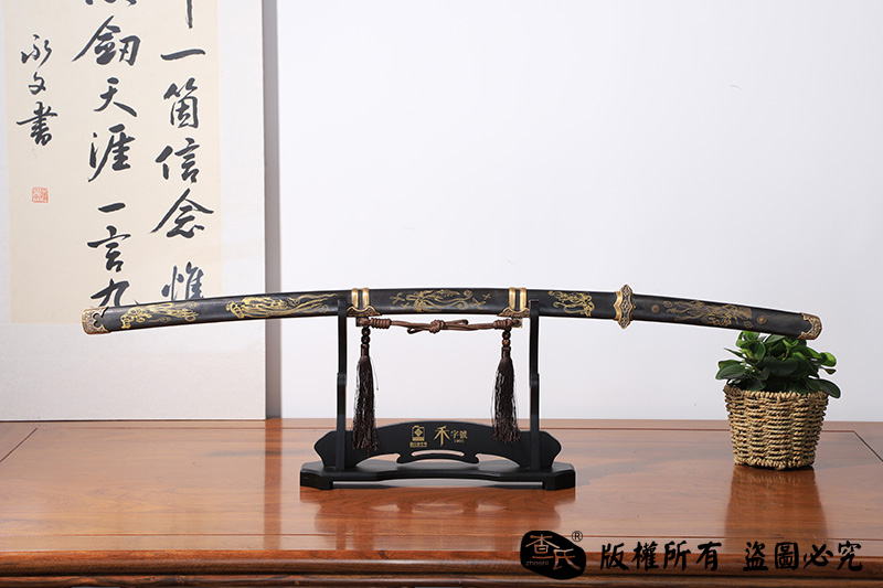 【作品简介】 本店商品均实物拍摄,细节清晰,可仔细比较。 【作品规格】 全长:103cm左右,柄长:26.4cm,刃长:73.5cm,刃宽:3.2cm,刃厚:0.8cm,重量:不带鞘1.2kg左右,带鞘1.87kg左右。 【刃材工艺】 【作品鞘材】 【作品装具】 【作品硬度】 HRC 【作品柄材】 【作品赠品】 锦盒 架子 证书 【其他事项】 手工产品,重量尺寸稍有误差,请以实物为准。 赠品里面的架子并不是图上的展示的架子,图片架子另外加180。