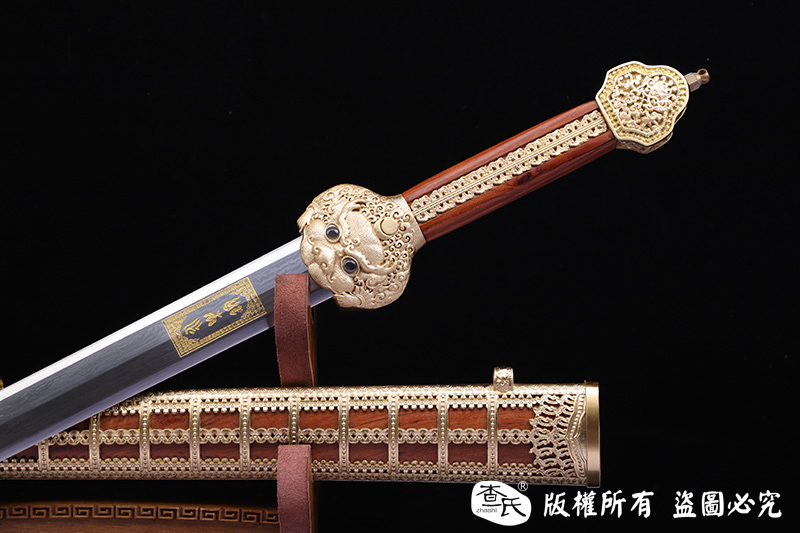 【作品规格】 全长:97cm左右,柄长:20cm,刃长:66cm,刃宽:4.3cm,刃厚:1.0cm,重量:不带鞘1.6kg左右,带鞘2.9kg左右。
