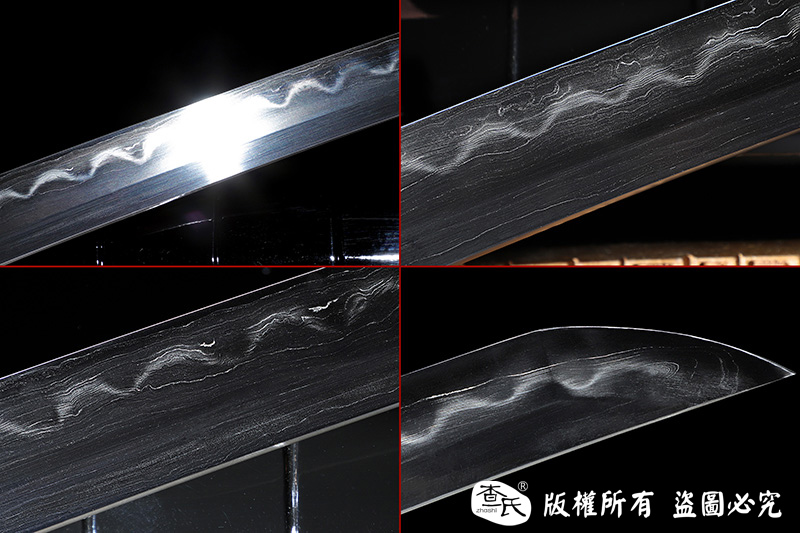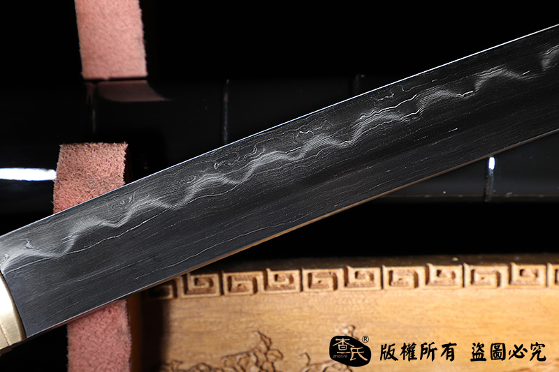 【刃材工艺】 古法手工锻造地肌钢,运用本三枚夹钢工艺 +敷土烧刃热处理,手工精细磨